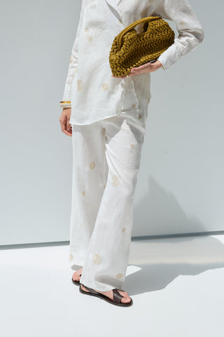 Luna Keten Nakışlı Pantolon Ekru