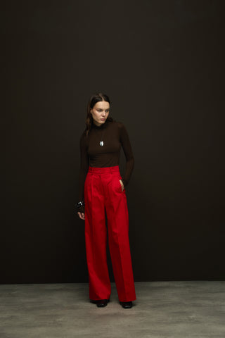 Geniş Belli Bol Paça Pantolon Kırmızı