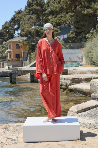 Haze Nervürlü Keten Tunik Kiremit