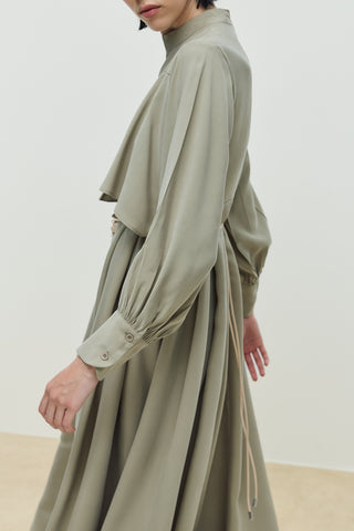 Mist Keten Düğmeli Elbise Açık Yeşil