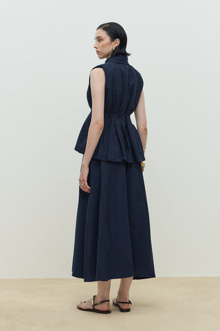 Mist Keten Düğmeli Elbise Lacivert
