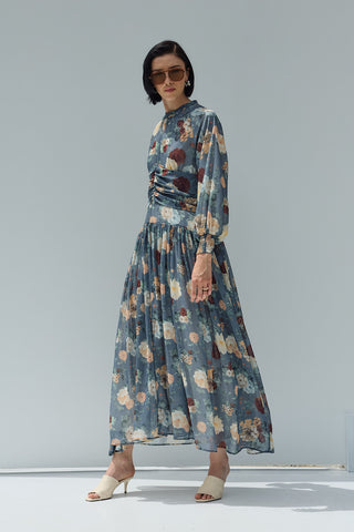 Flow Şifon Elbise Mavi Çiçekli