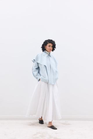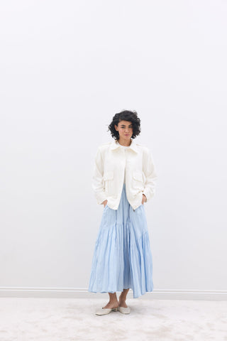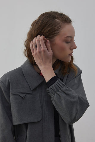 Omuz Vatkalı Fermuarlı Ceket Beyaz