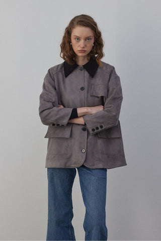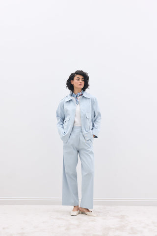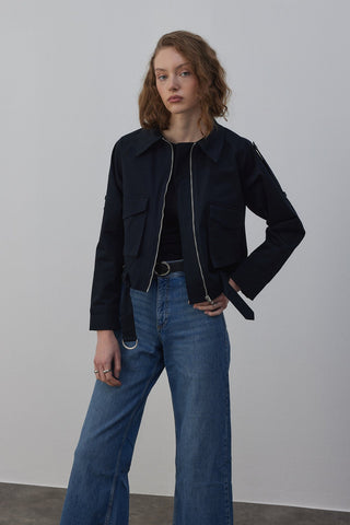 Omuz Vatkalı Fermuarlı Ceket Bebe Mavi