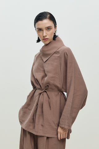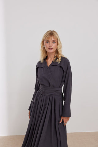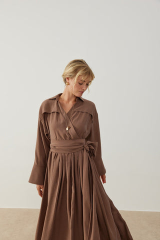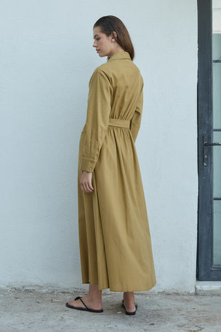 Mist Keten Düğmeli Elbise Yağ Yeşili