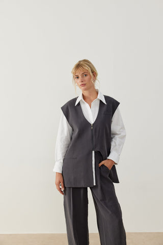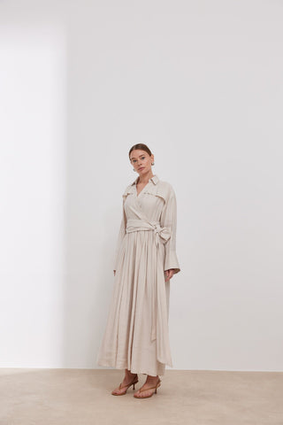 Mist Keten Düğmeli Elbise Açık Yeşil