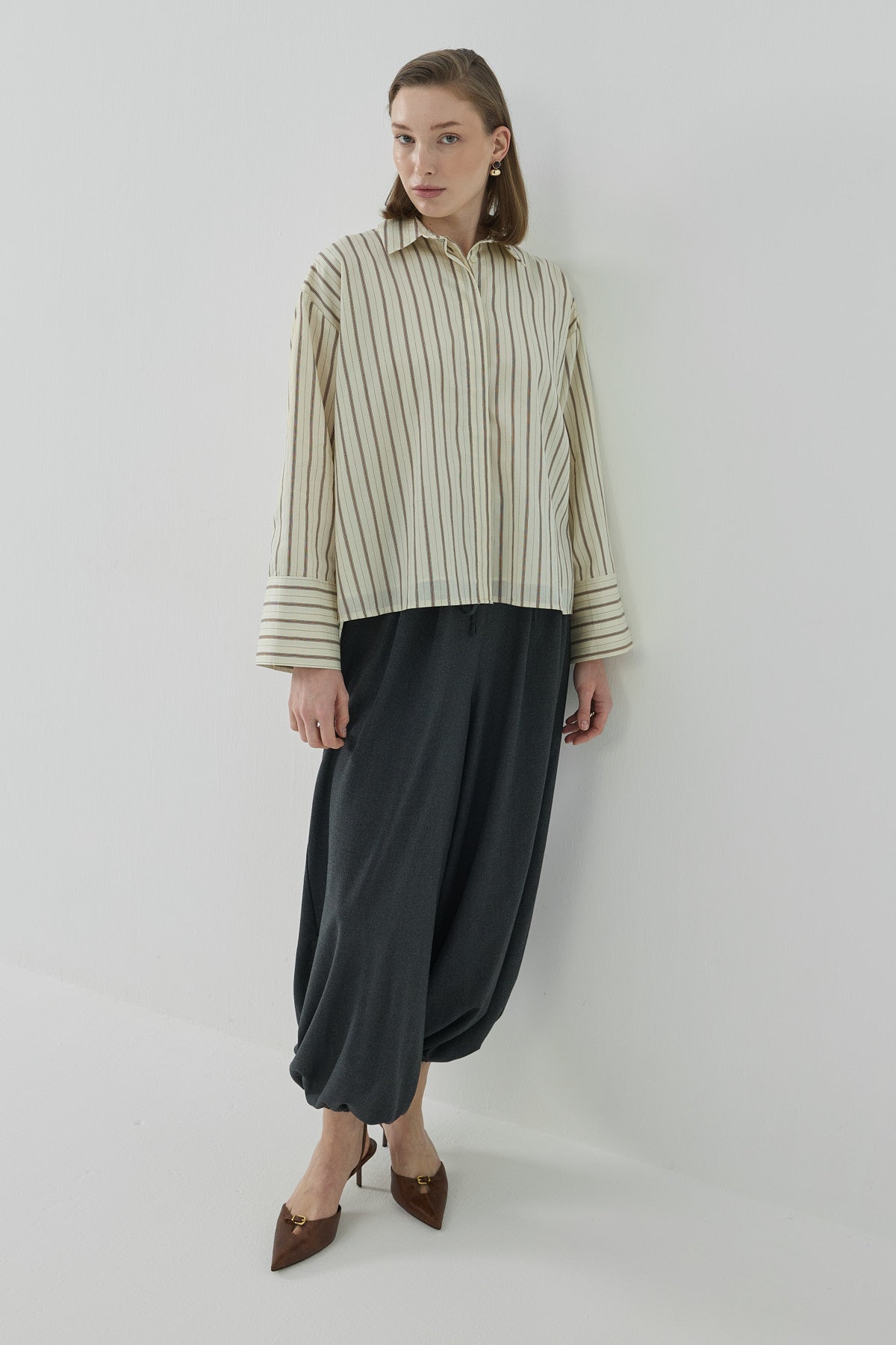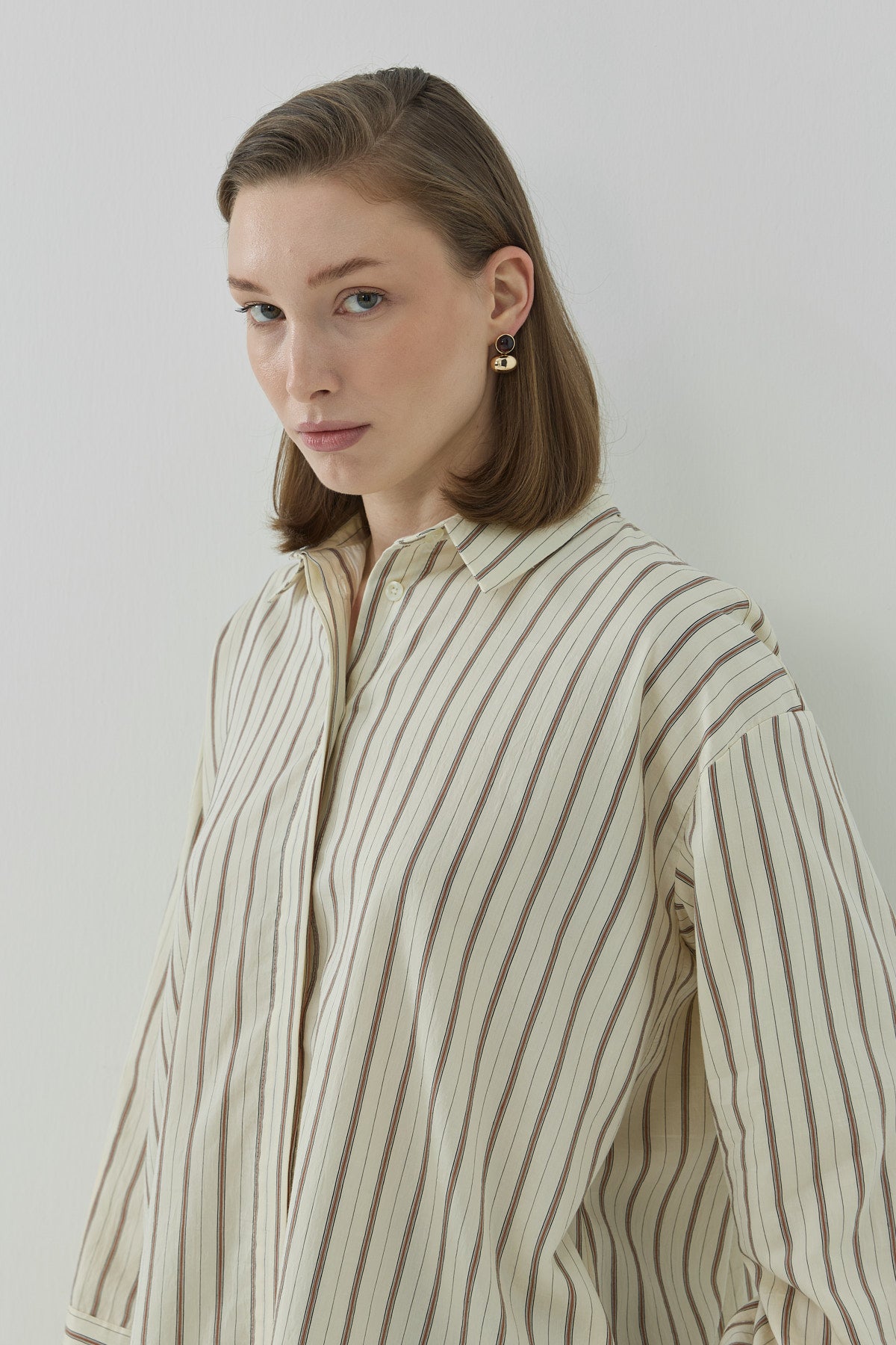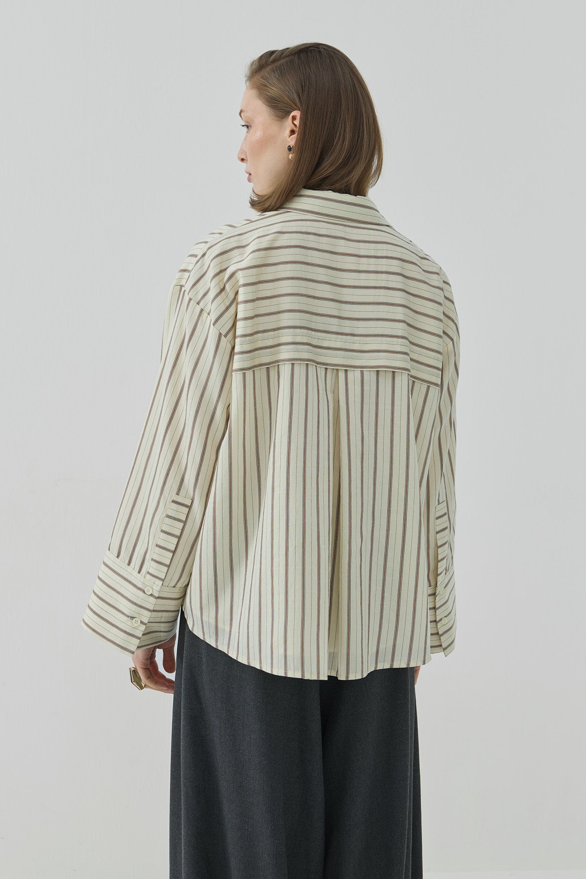 Brilla Astarlı Çizgili Gömlek Kahverengi Çizgili