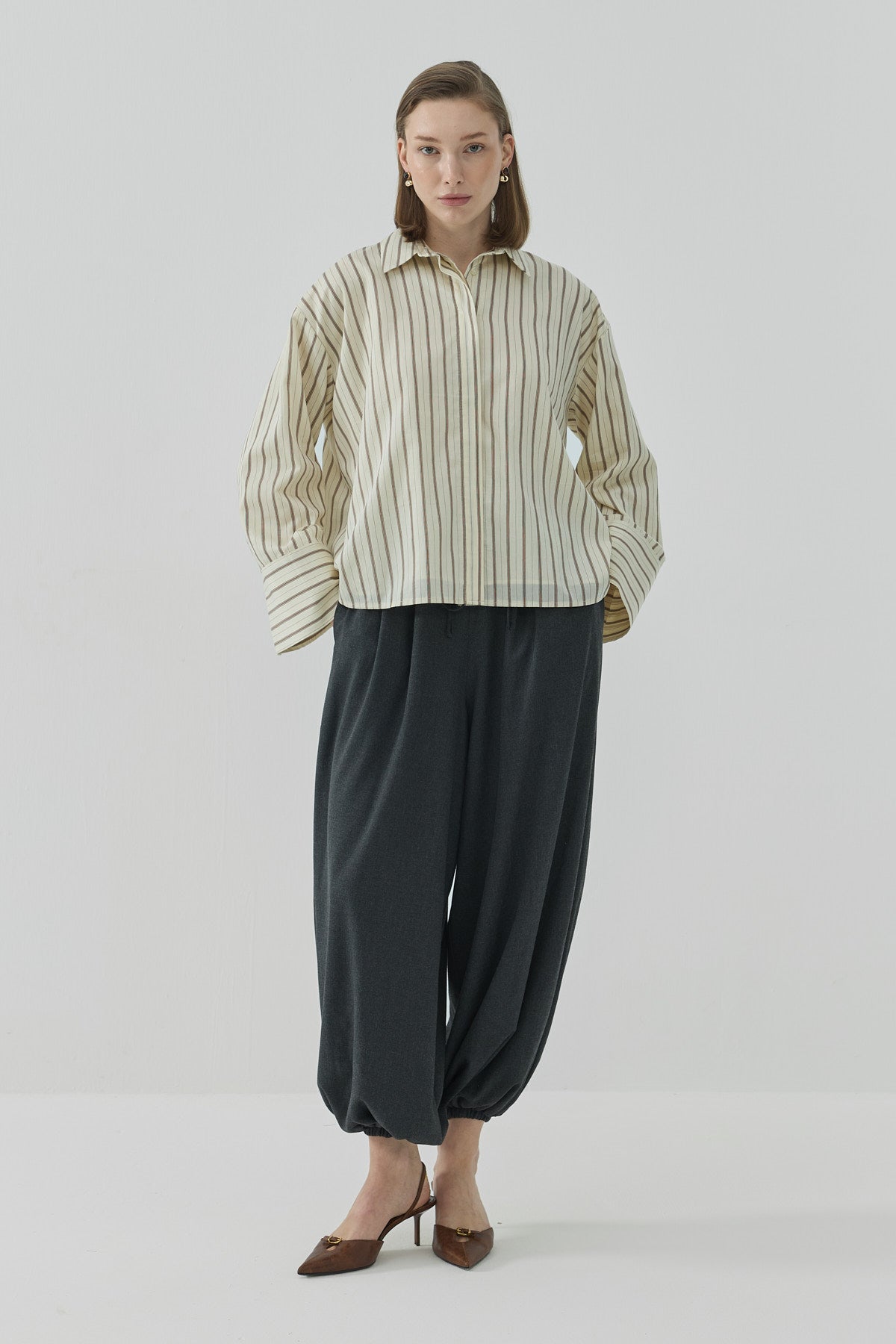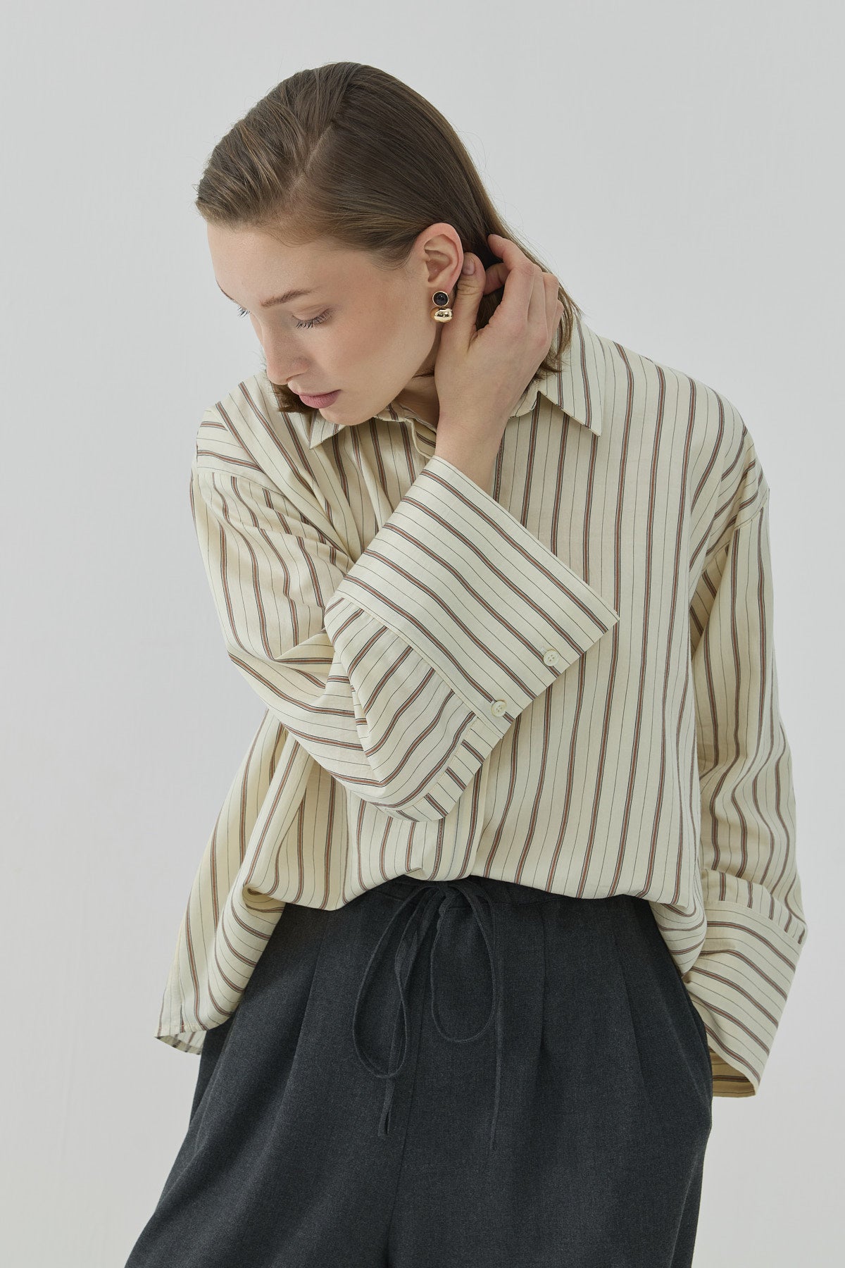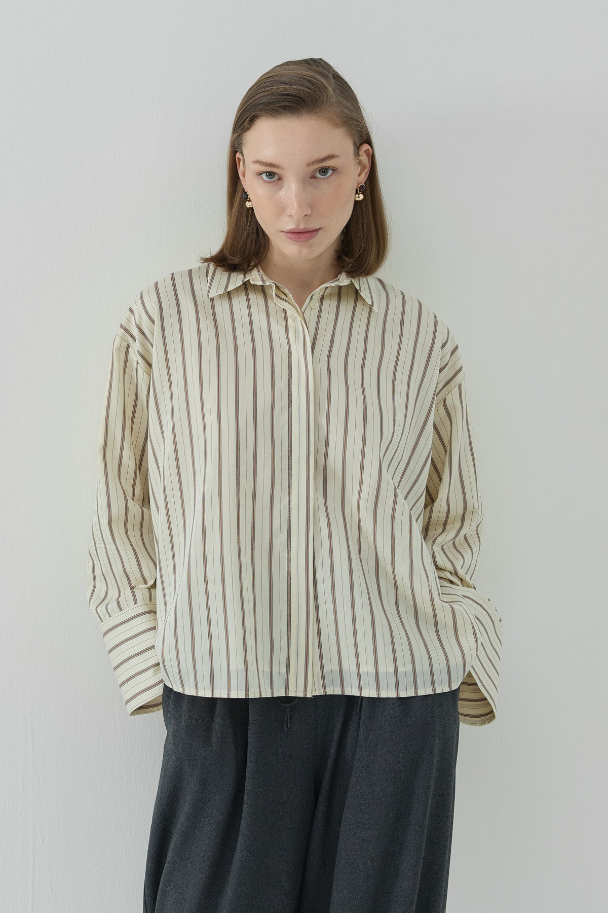 Brilla Astarlı Çizgili Gömlek Kahverengi Çizgili