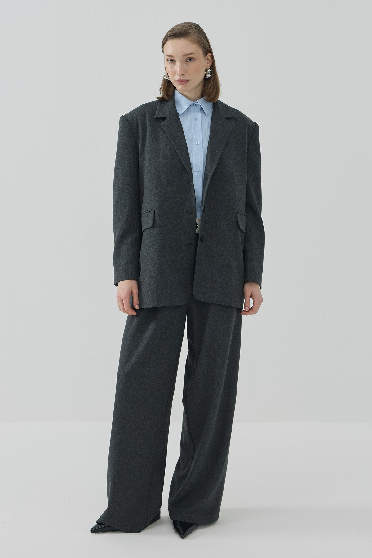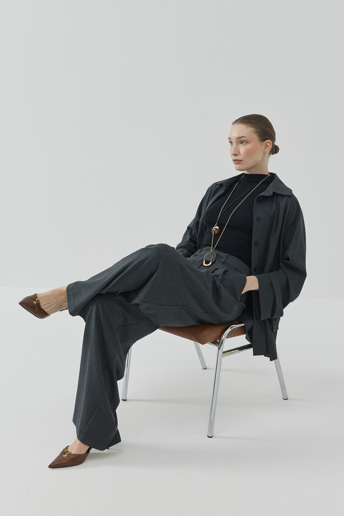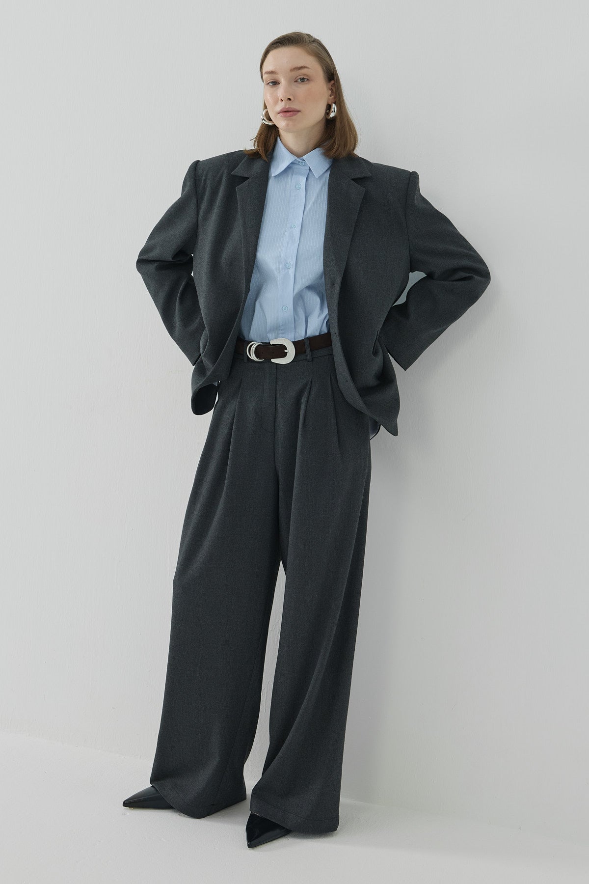 Pera Pileli Palazzo Pantolon Antrasit