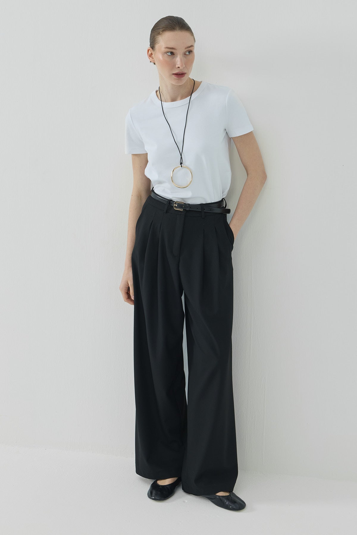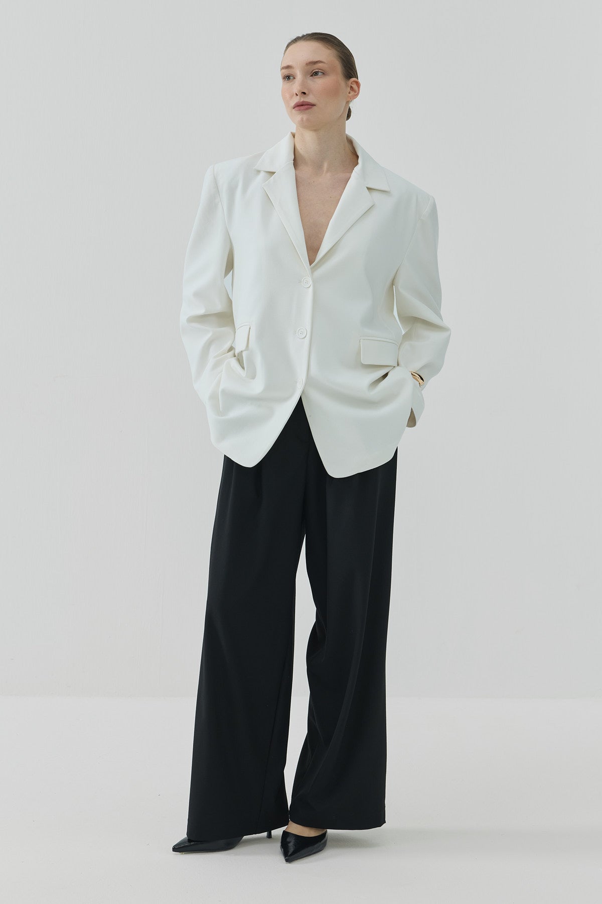 Pera Pileli Palazzo Pantolon Siyah