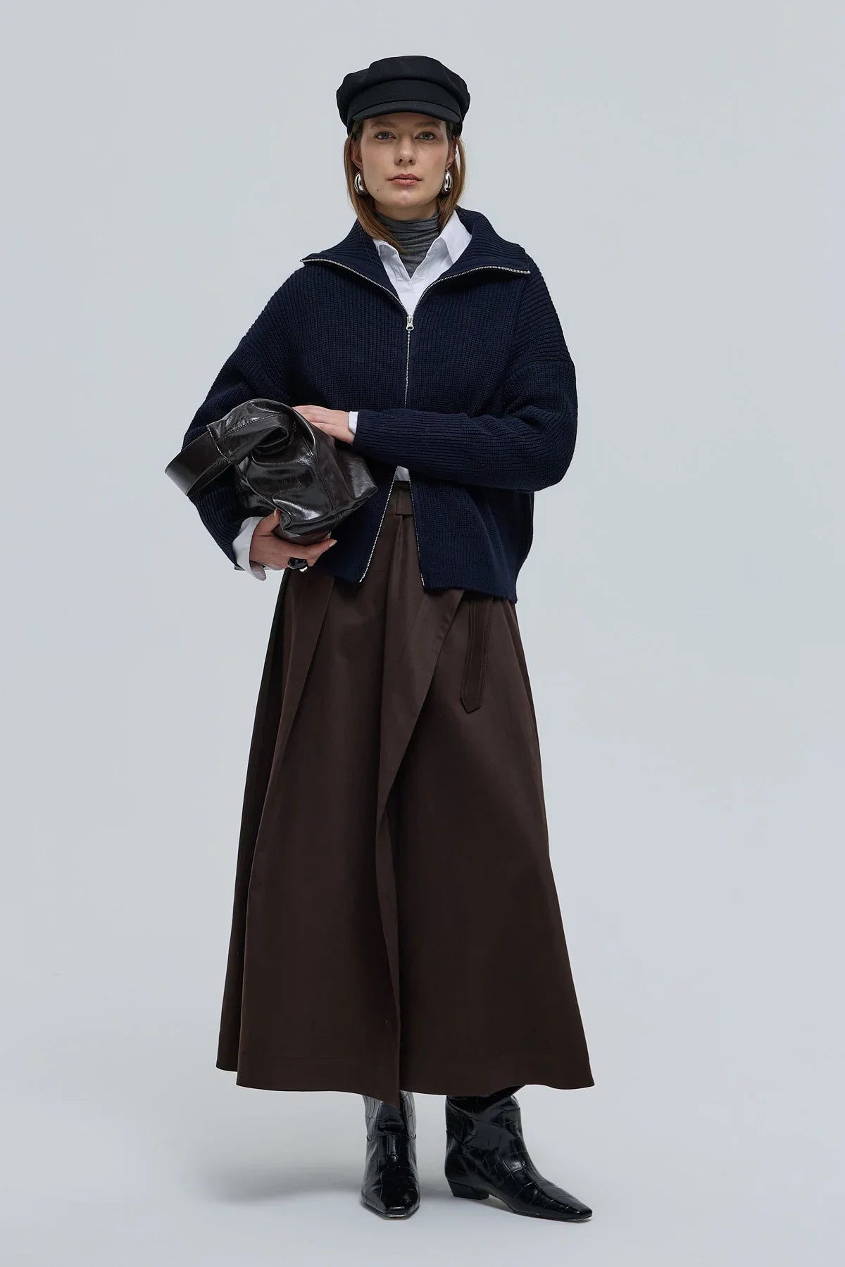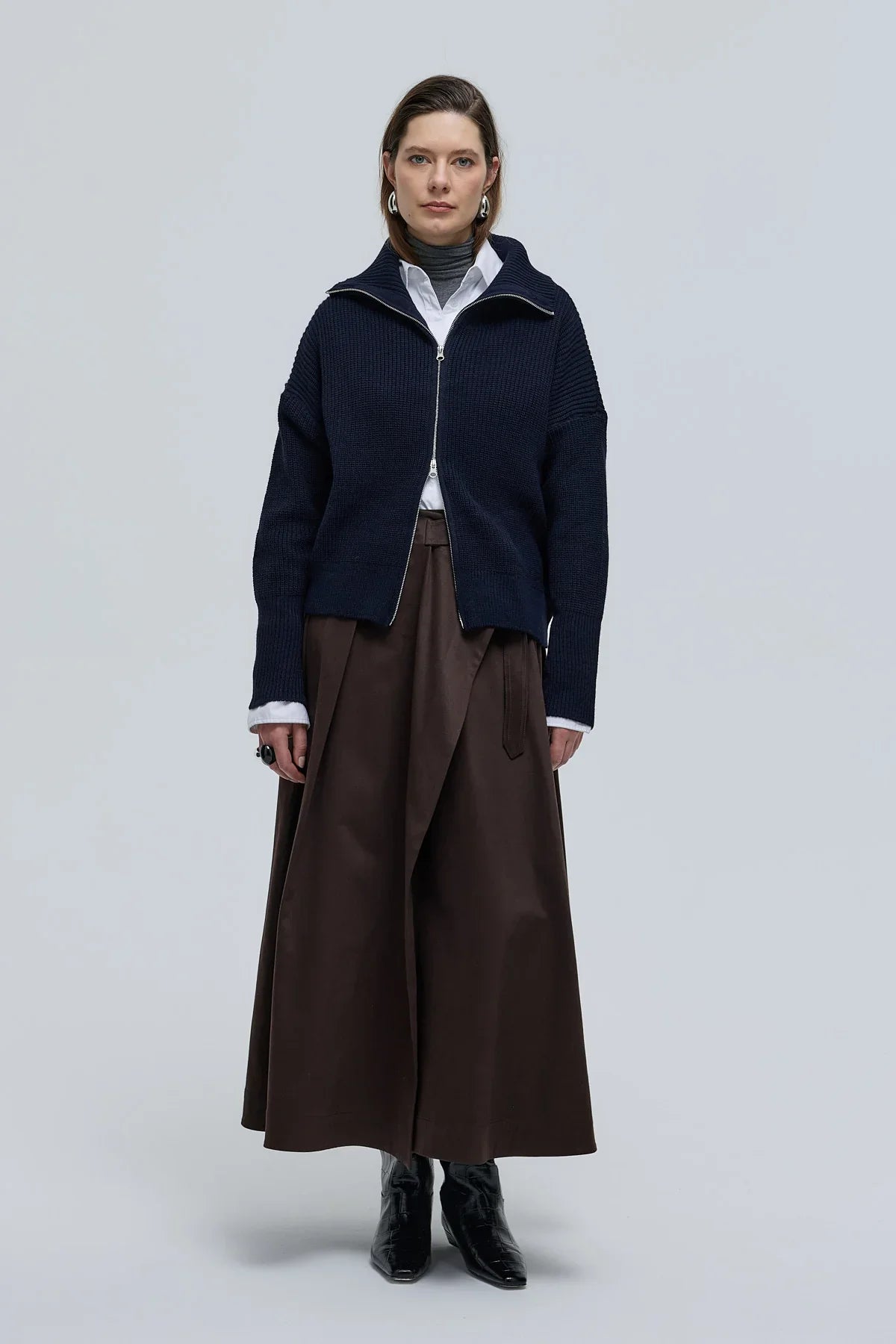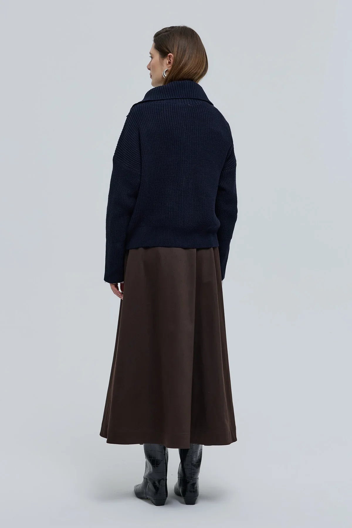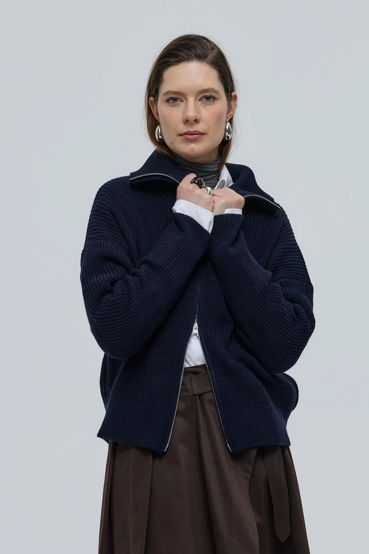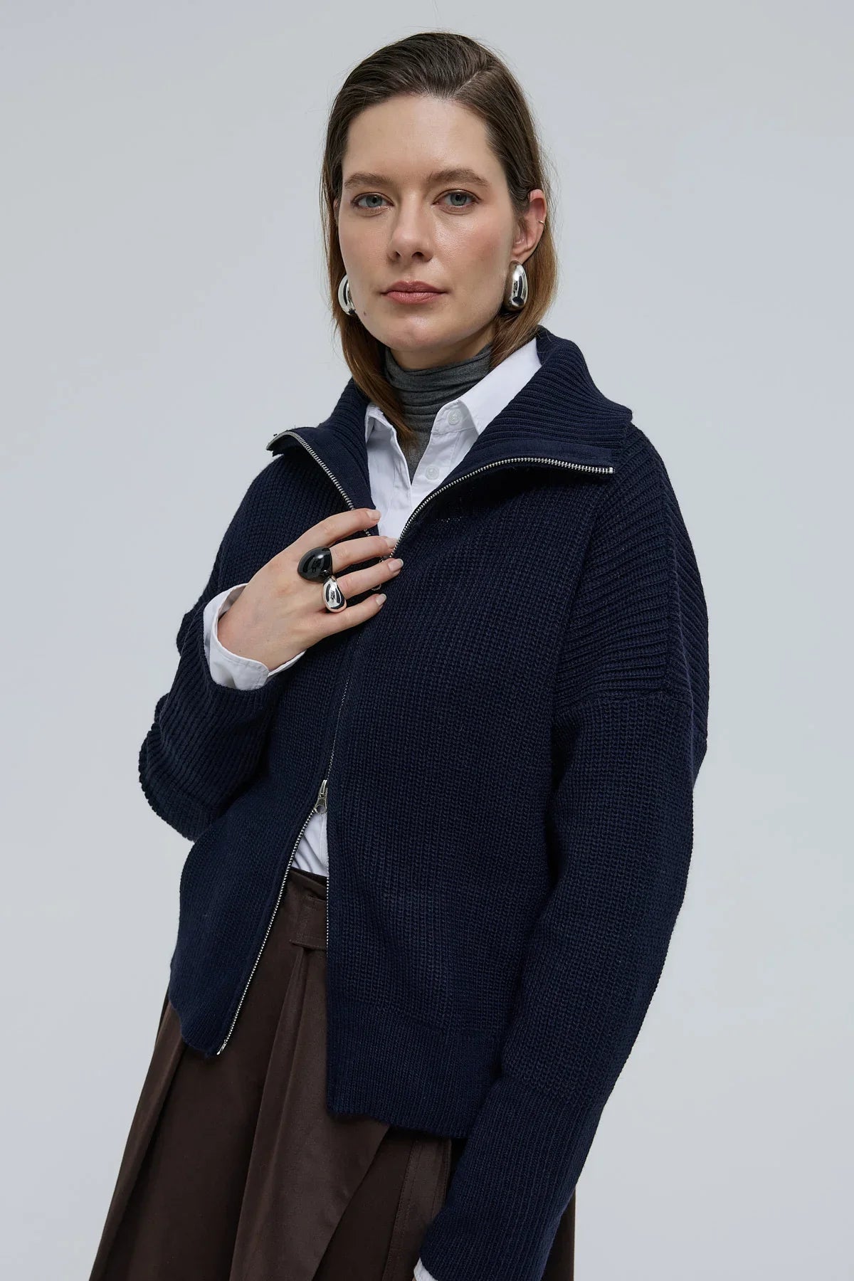 Çift Fermuarlı Yakalı Hırka Lacivert