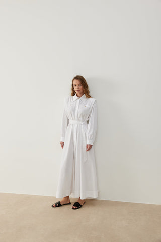 Cupra kumaş, poplin, pamuk-keten karışımlı uzun elbise modelleri; hem şehirde hem doğada özgürce hareket etmeniz için ideal. Ekru, bej, mürdüm ve lacivert gibi zarif renklerle sunulan bu elbiseler, stilinizi yormadan tamamlar. Belden bağlamalı, kemerli ya da seyyar kemerli detaylar gün boyu konfor sunar. Ayrıca ceket ve yelekler ile kombinlenerek farklı mevsim geçişlerinde de işlevselliğini korur.