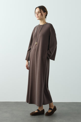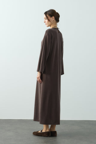Trec Geniş Kollu Uzun Elbise Kahverengi