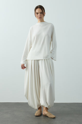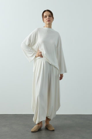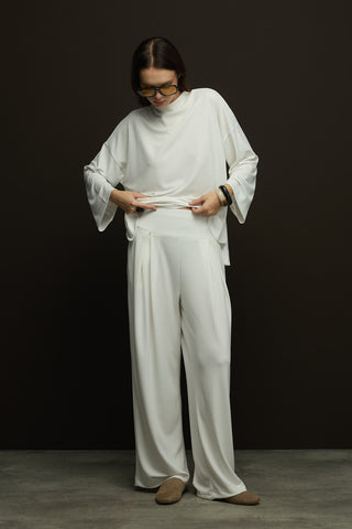 Geniş Belli Bol Paça Pantolon Ekru