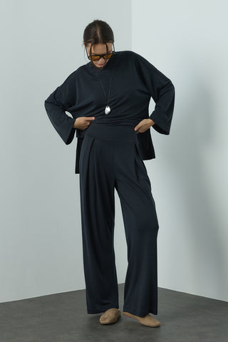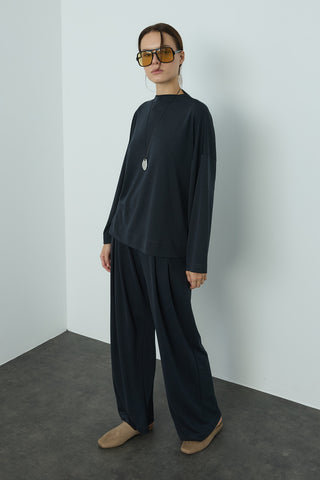 Pileli Wide Leg Pantolon Antrasit