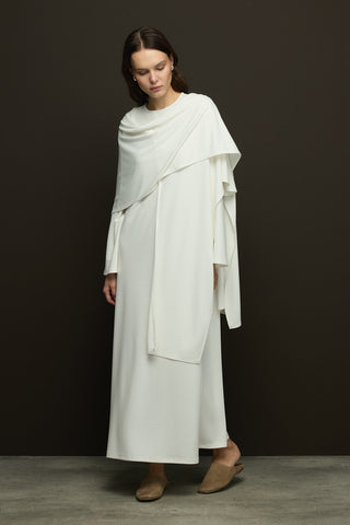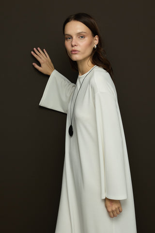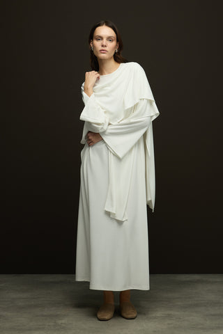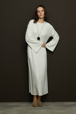 Trec Geniş Kollu Uzun Elbise Ekru