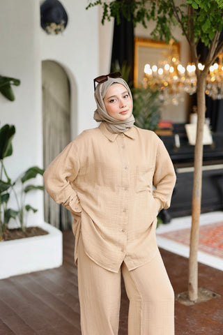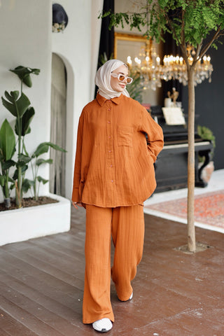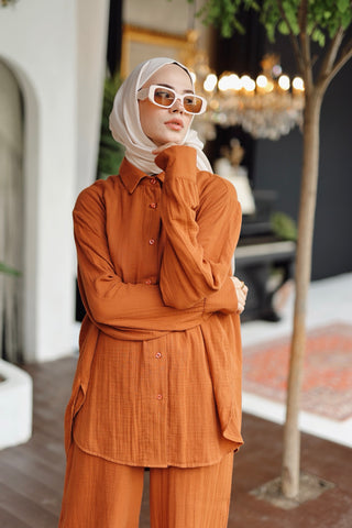 Organik Müslin Gömlek Tarçın Kahve