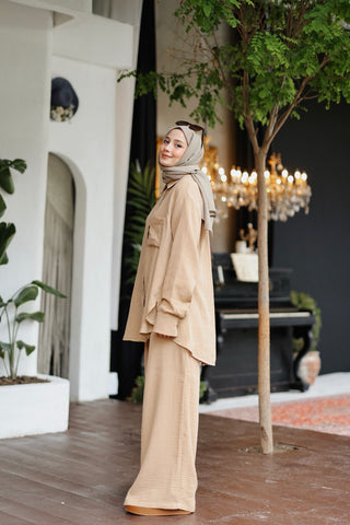 Crease Gömlek / Etek Takım Kahverengi