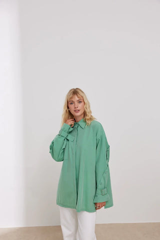Lizbon Kolu Düğmeli Gömlek Açık Yeşil