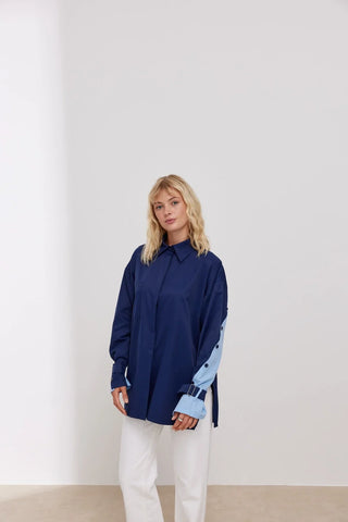 Lizbon Kolu Düğmeli Gömlek Lacivert