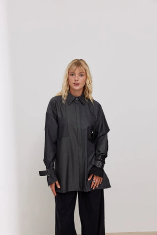 Lizbon Kolu Düğmeli Gömlek Antrasit