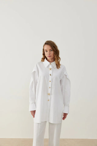 Piloma Düğme Detaylı Keten Gömlek Beyaz