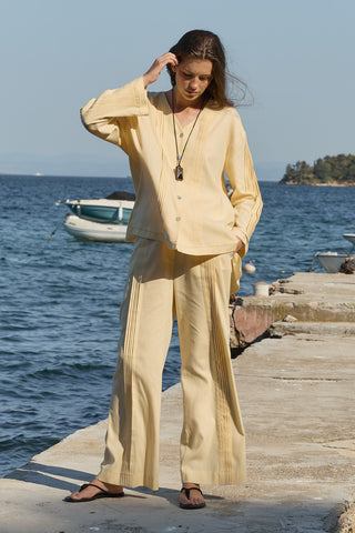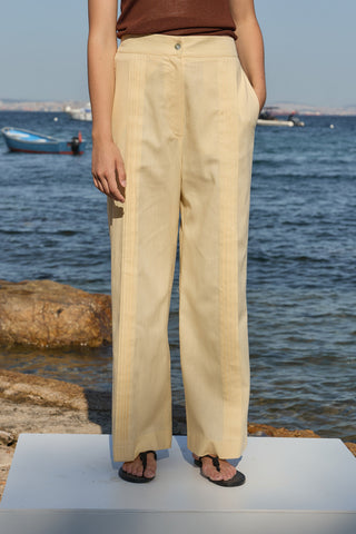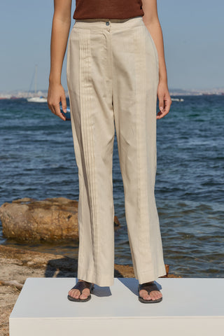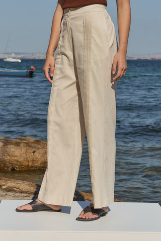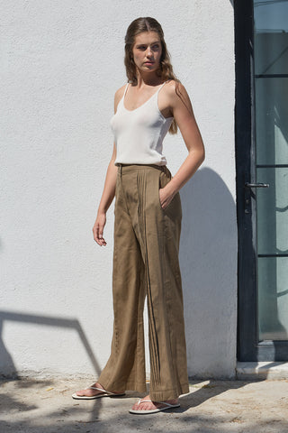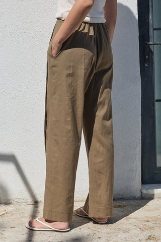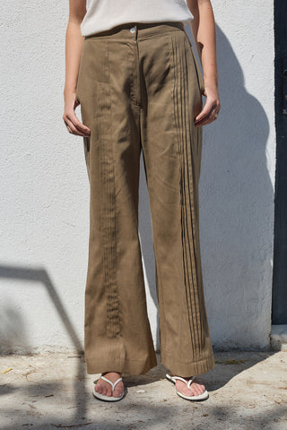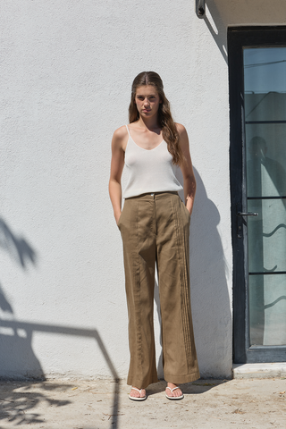 Haze Nervürlü Keten Pantolon Koyu Bej