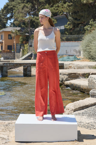 Keten Yüksek Bel Pantolon Koyu Lacivert