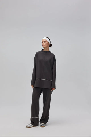 Scuba kumaşın modern dokusunu yansıtan fermuarlı scuba takım, leopar desenli pantolon ve kontrast bel büzgülü takımlar gibi parçalar, sportif kombinlere güçlü bir duruş kazandırıyor. Yandan fermuarlı oyşo takım ve polo yaka detaylı sweatshirt modelleri ise sade şıklığı seven kadınlar için ideal. Siyah, lacivert, antrasit ve taş gibi zamansız tonların yanı sıra bordo, yeşil ve vizon gibi dikkat çekici renk seçenekleriyle her tarza uygun alternatifler bulunuyor.