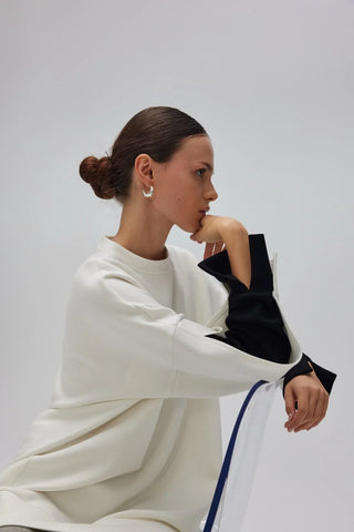Çift Renk Oyşo Sweatshirt Beyaz
