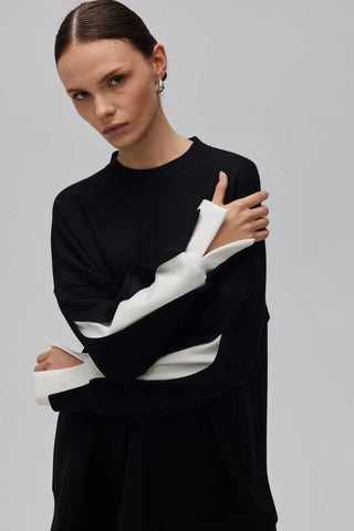 Çift Renk Oyşo Sweatshirt Siyah