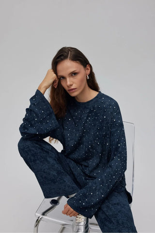 Batik Desenli Taşlı Takım Lacivert