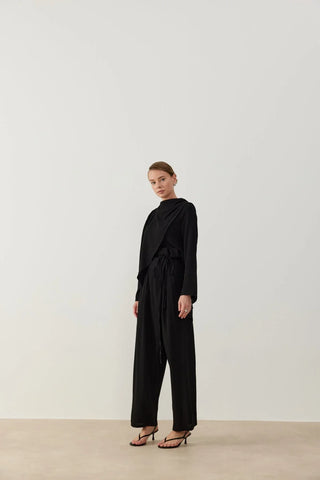 Kontrast Bel Büzgülü Ceket Pantolon Siyah