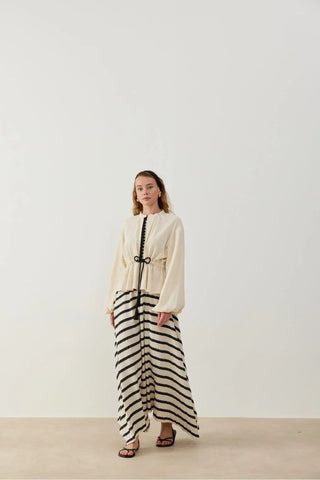 Bella Nervürlü Etek Gömlek Takım Ekru
