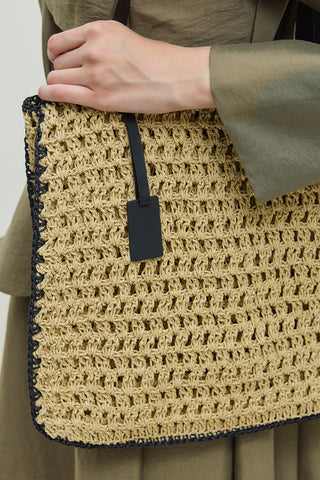 Hasır El Örgüsü Çanta Naturel - Siyah