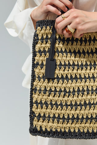 Hasır El Örgüsü Çanta Naturel - Siyah
