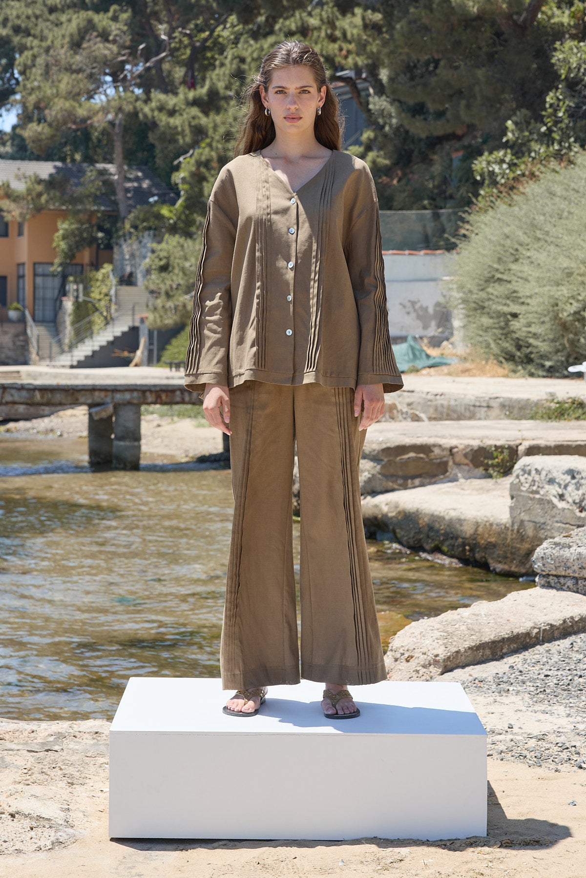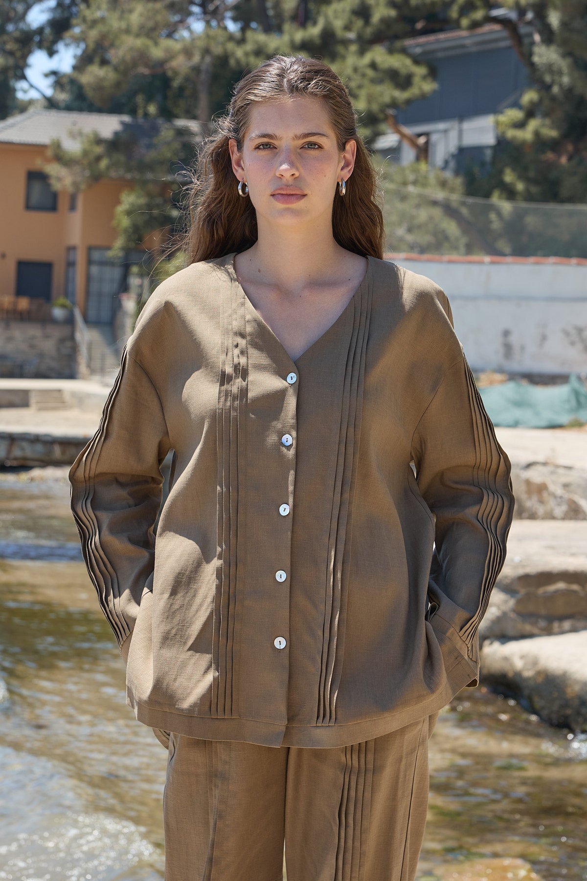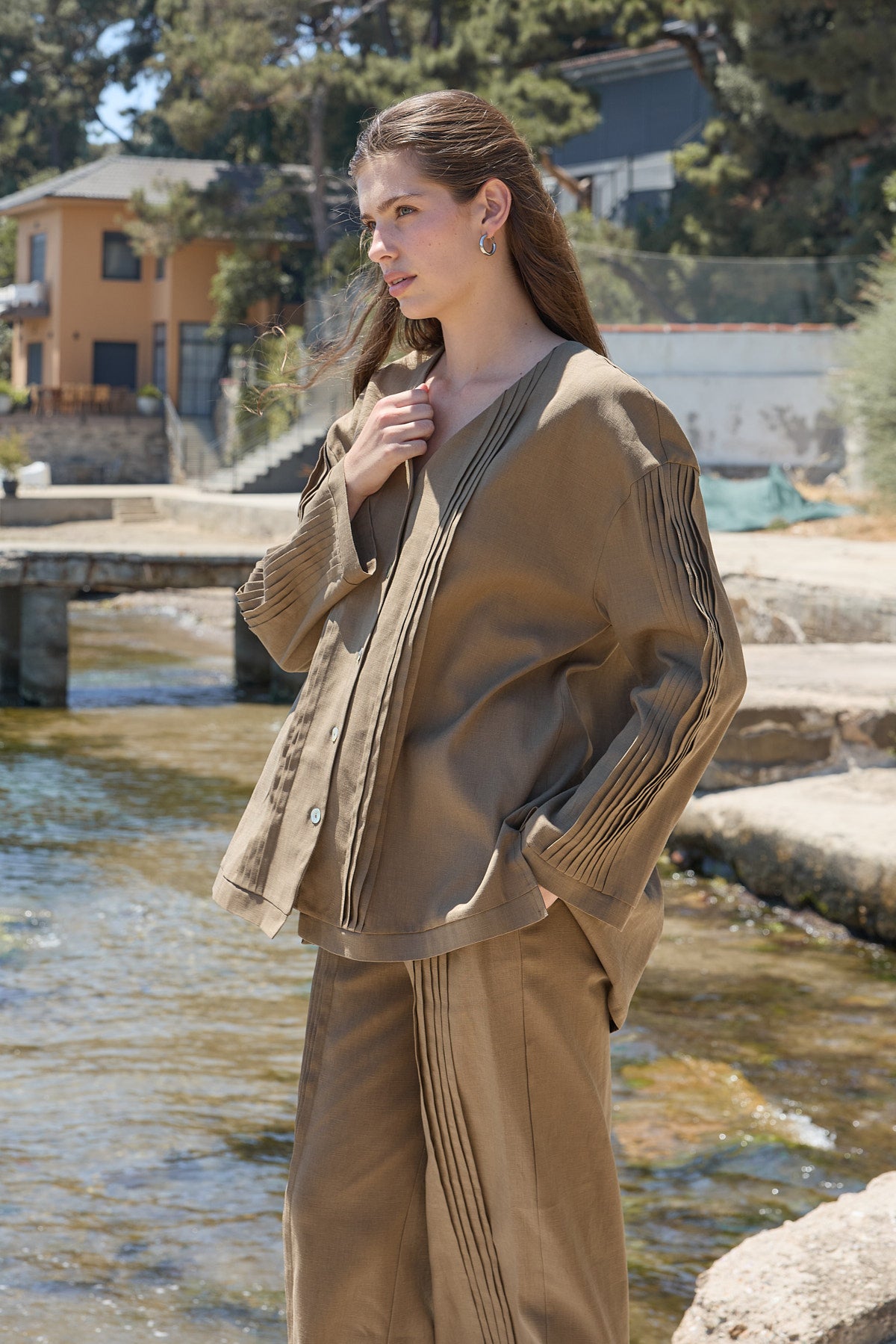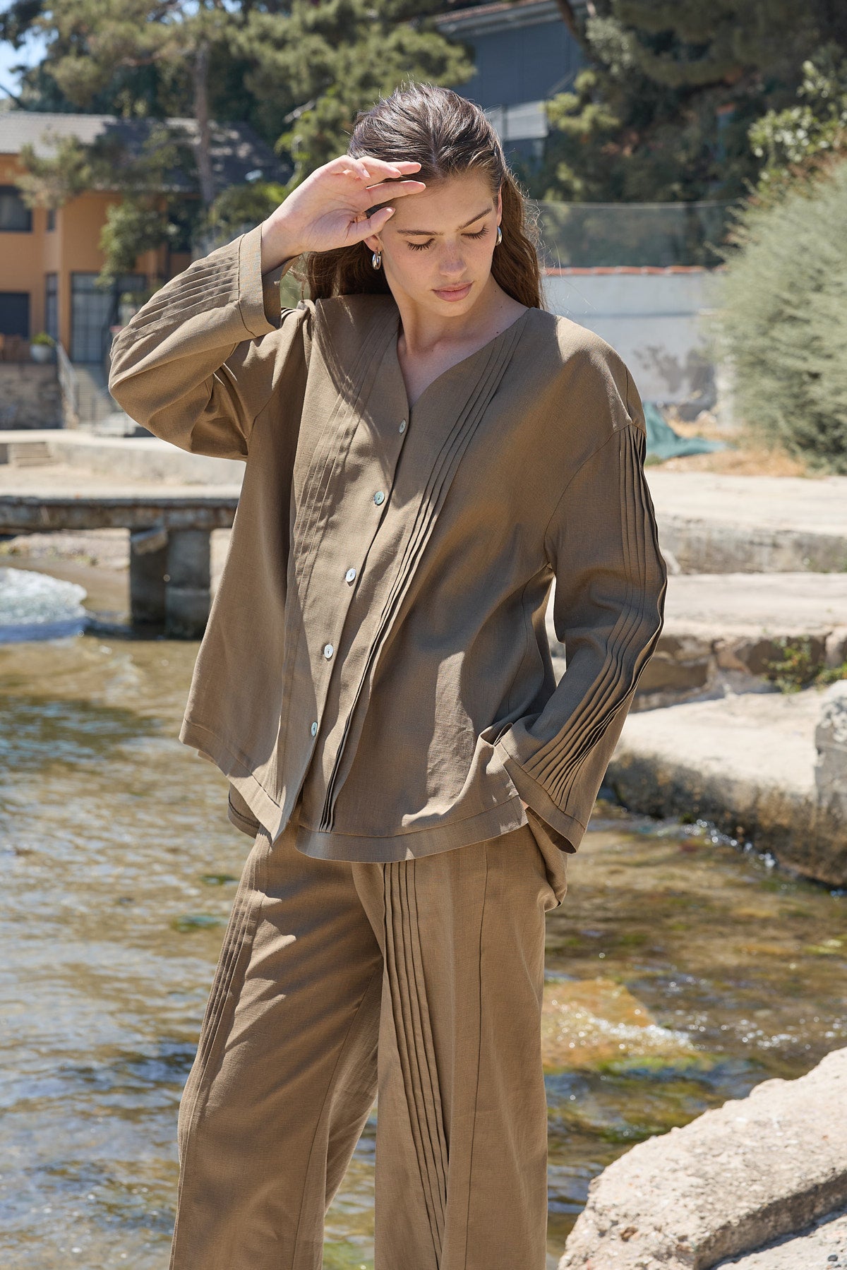 Haze Nervürlü Keten Tunik Koyu Bej