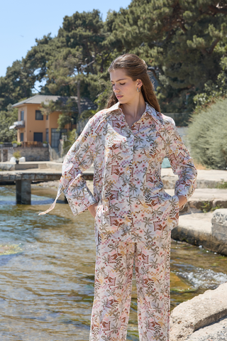 Beliz Keten Gömlek Kahverengi Desenli