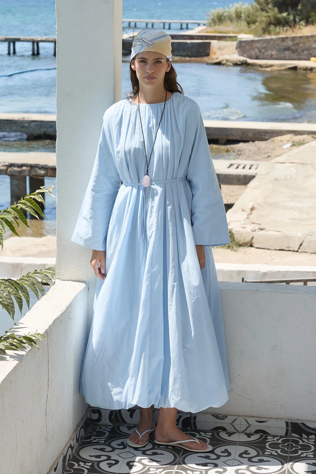 Bae Balon Vual Elbise Mavi