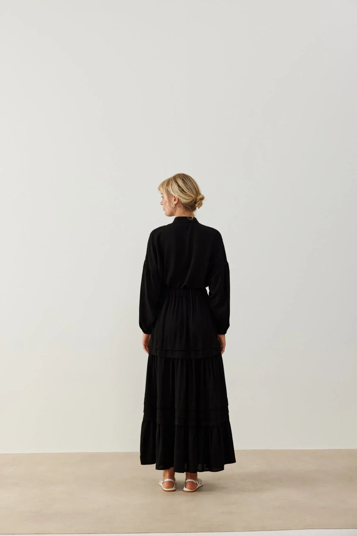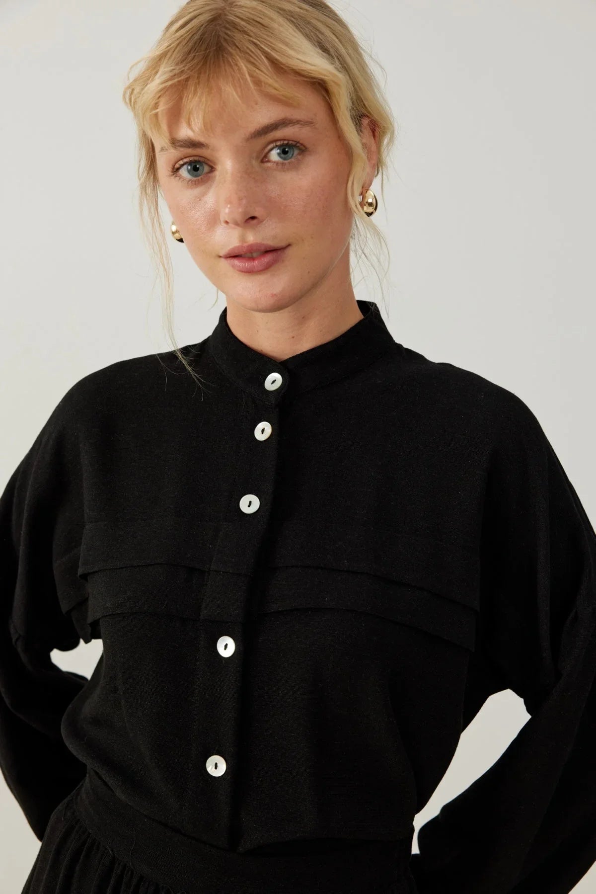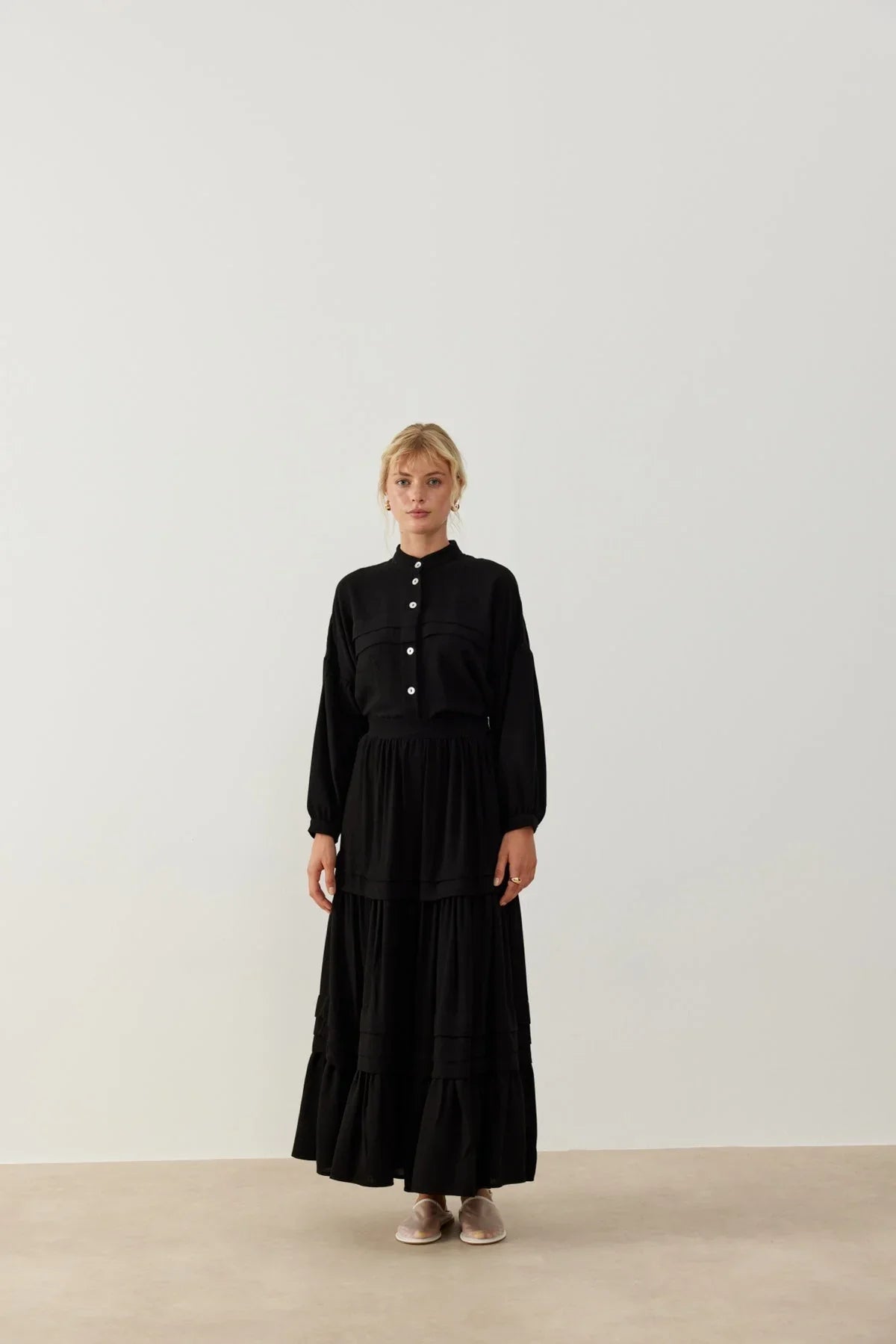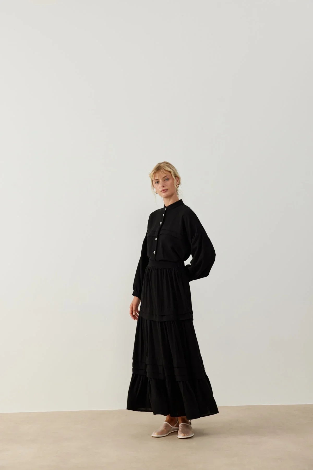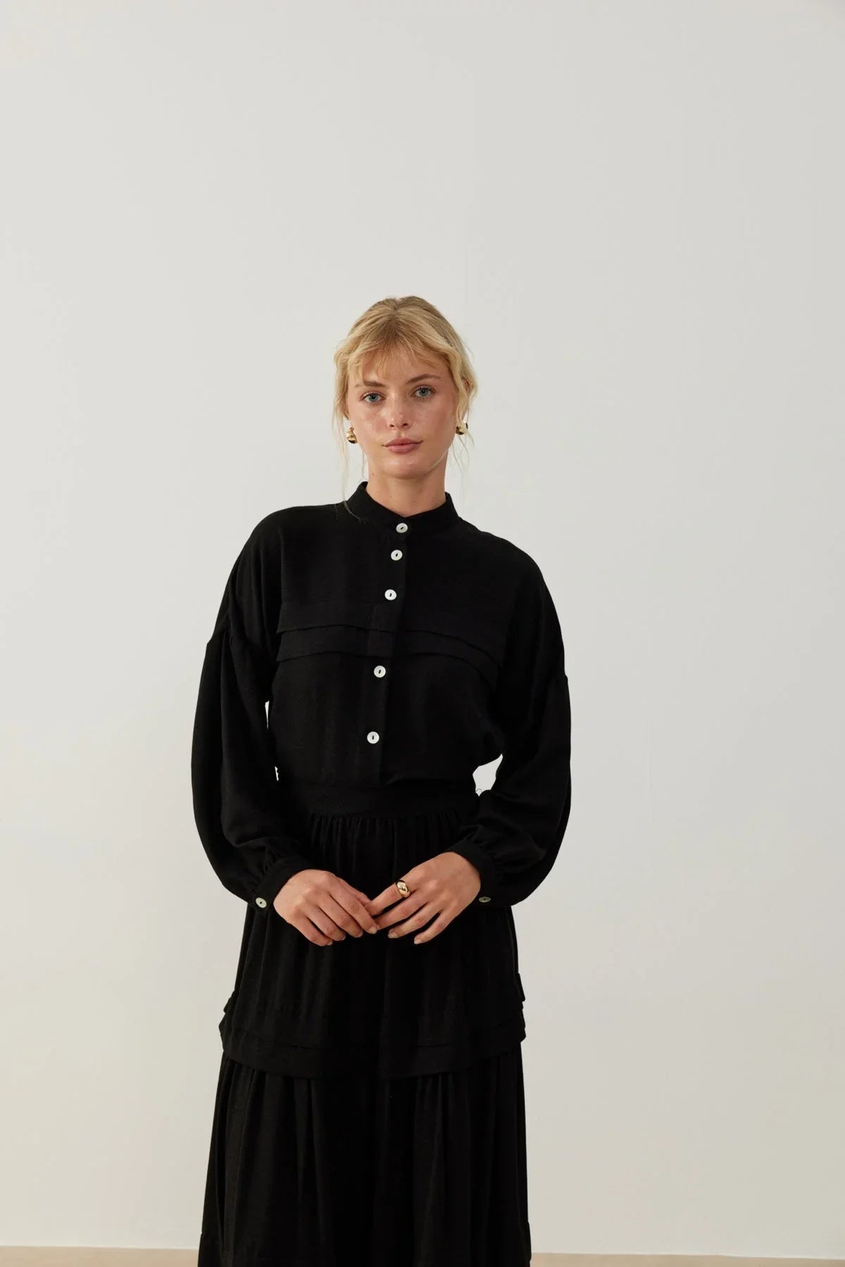 Bella Nervürlü Etek Gömlek Takım Siyah