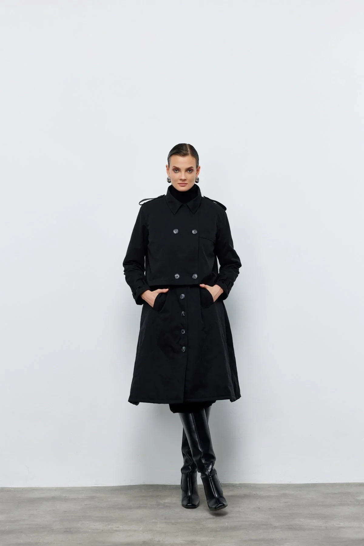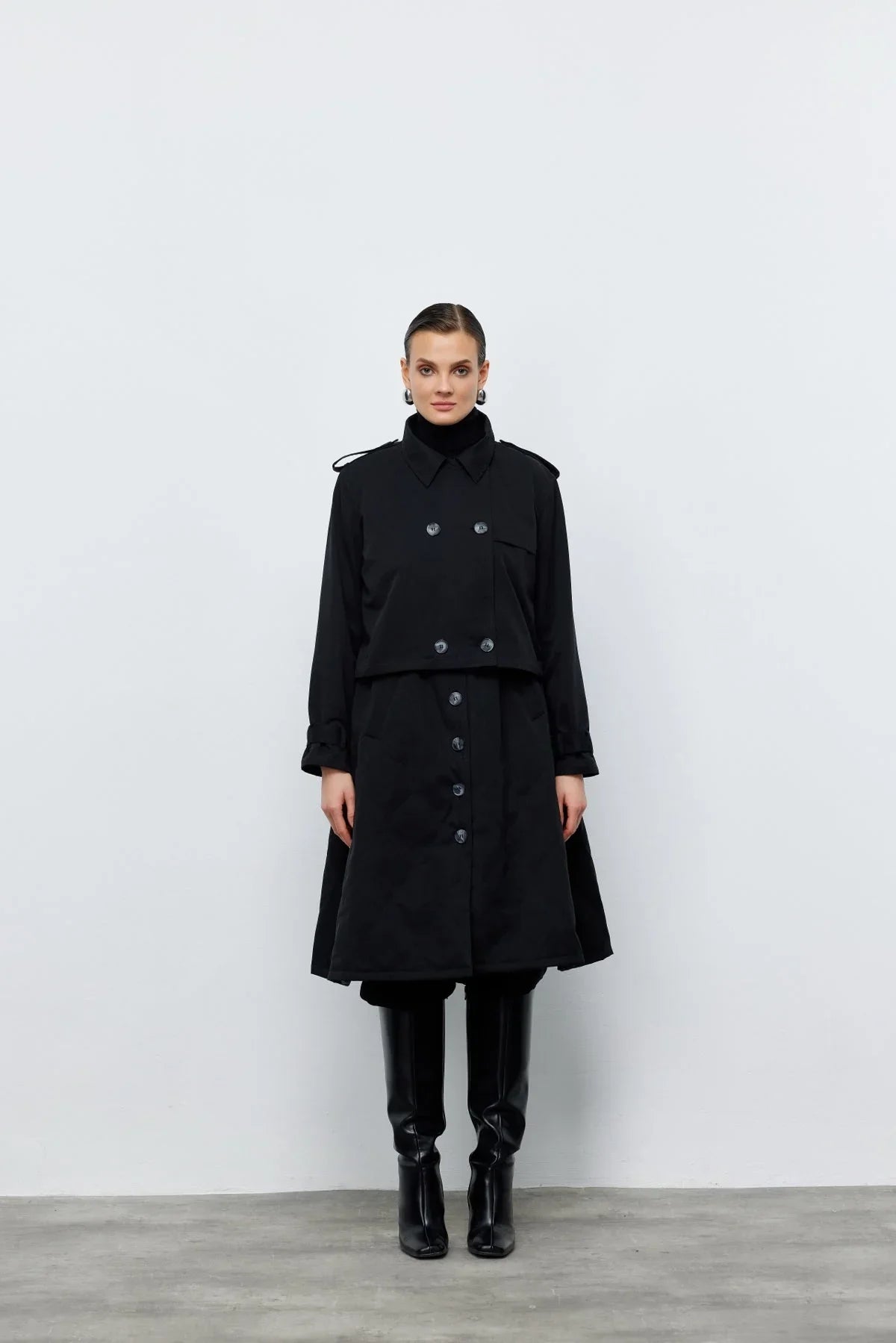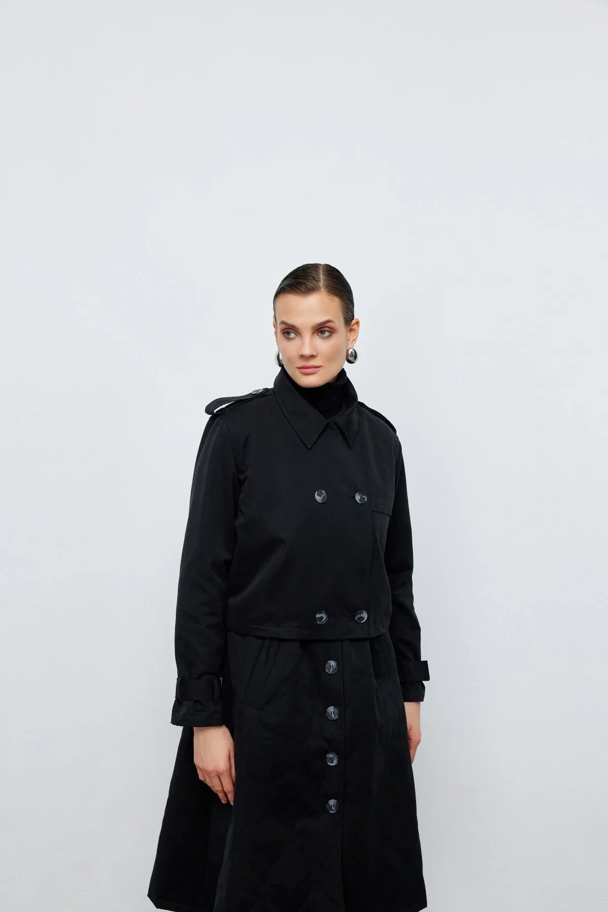 Ceket Yelek İkili Trençkot Siyah