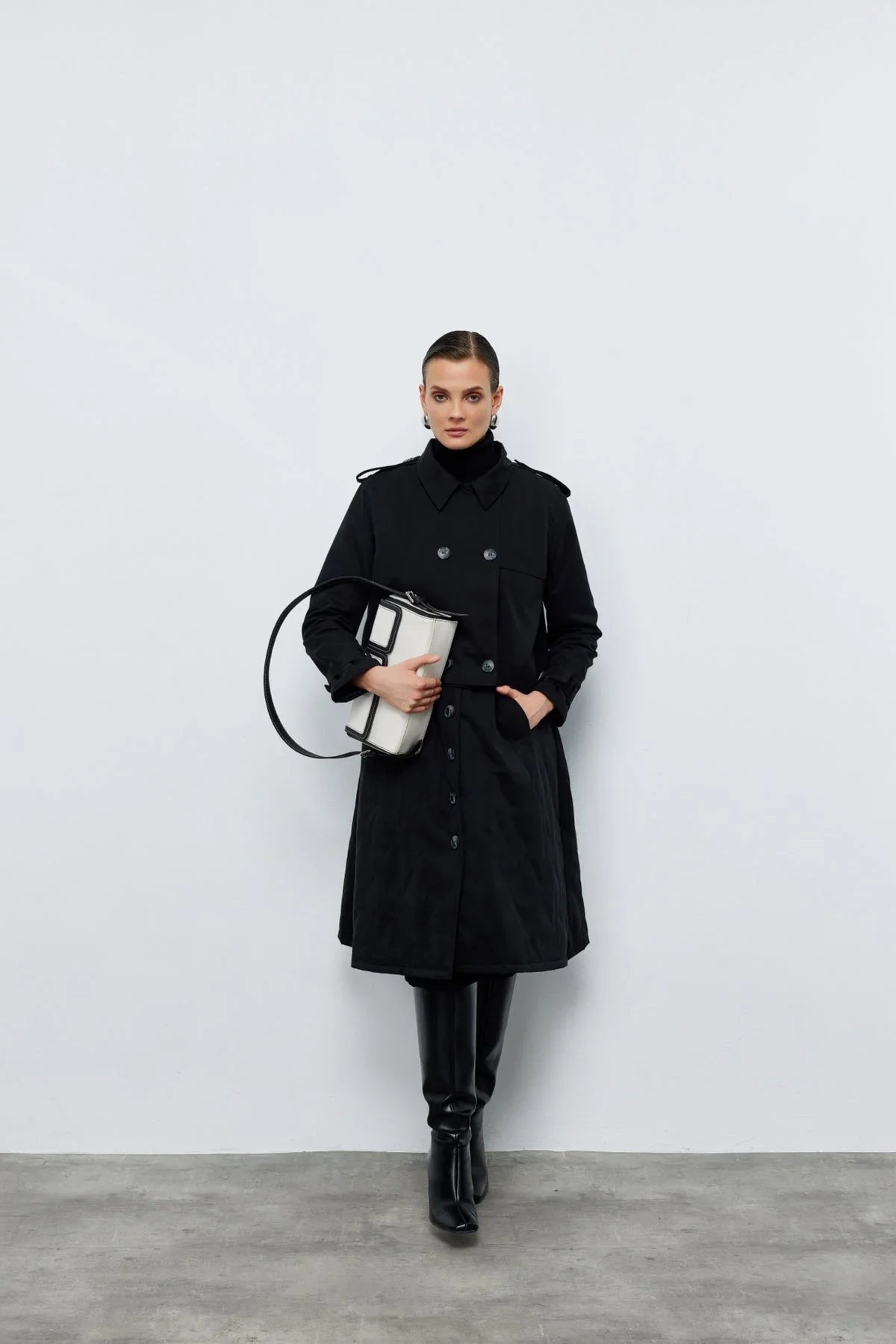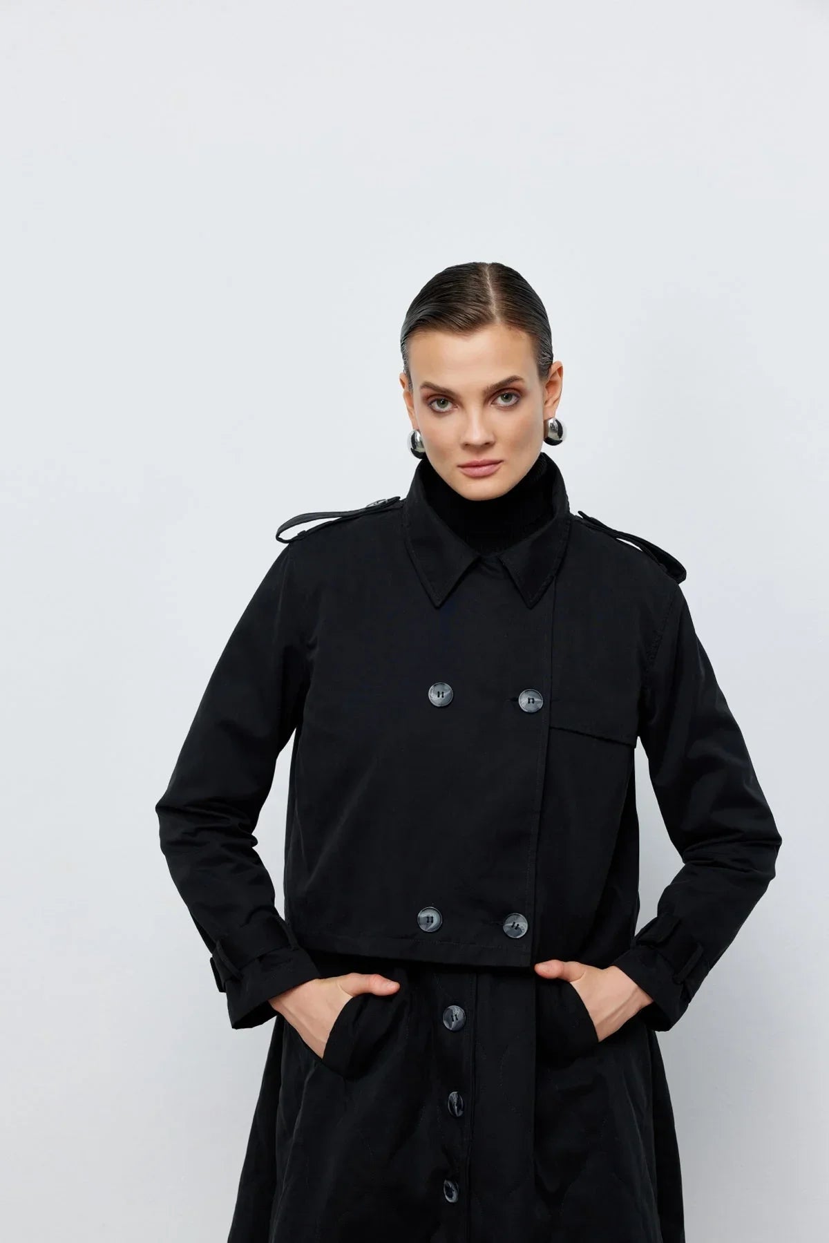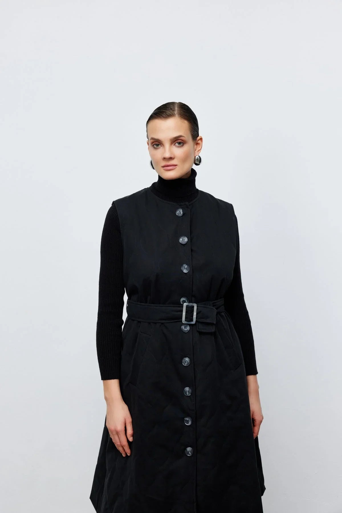 Ceket Yelek İkili Trençkot Siyah