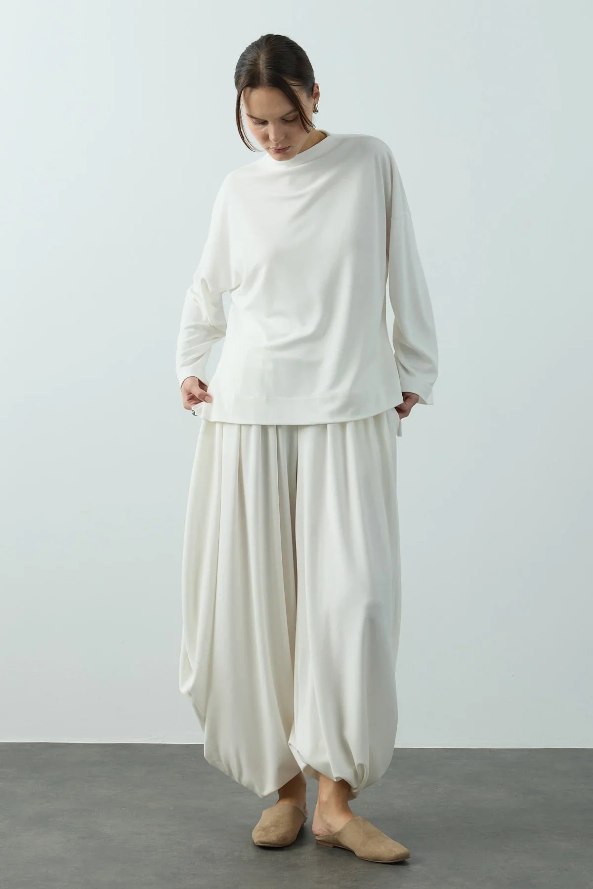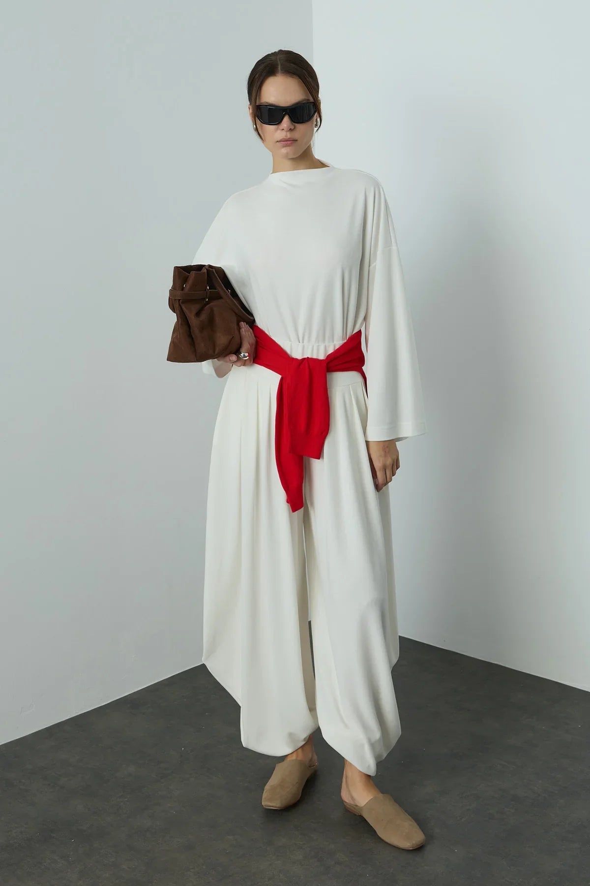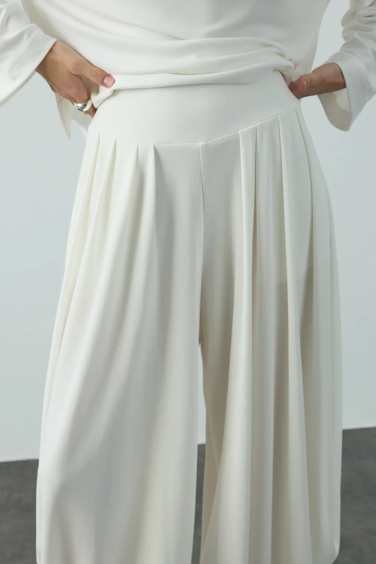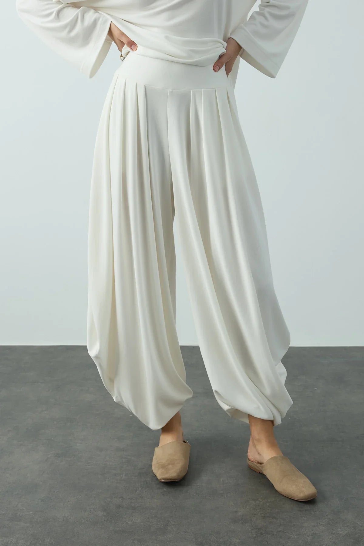 Yumuşak dokusu ve rahat kesimiyle şalvar pantolon, tencel kumaşı sayesinde nefes alabilirlik ve gün boyu konfor sunar. Önden pili detayları,korse görünümlü bel hattı sizi gün boyu rahat hissettirir.