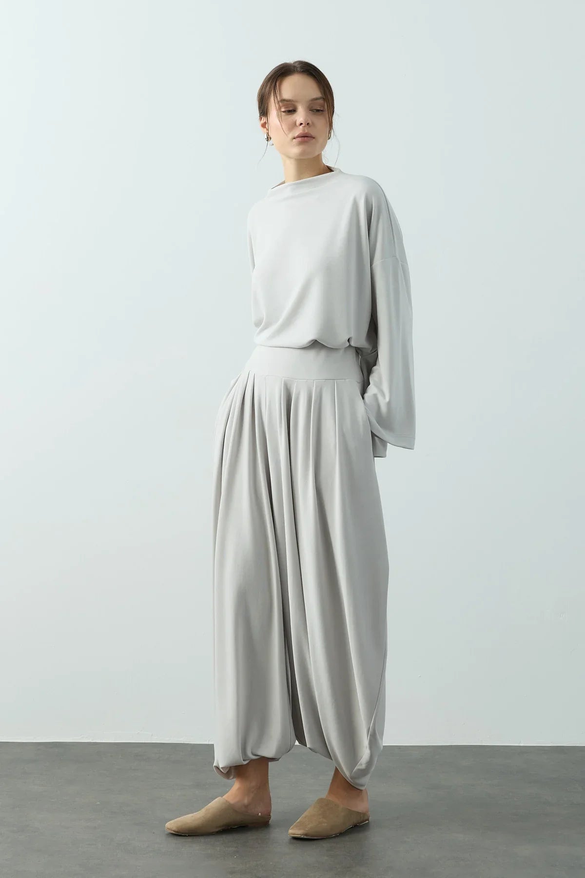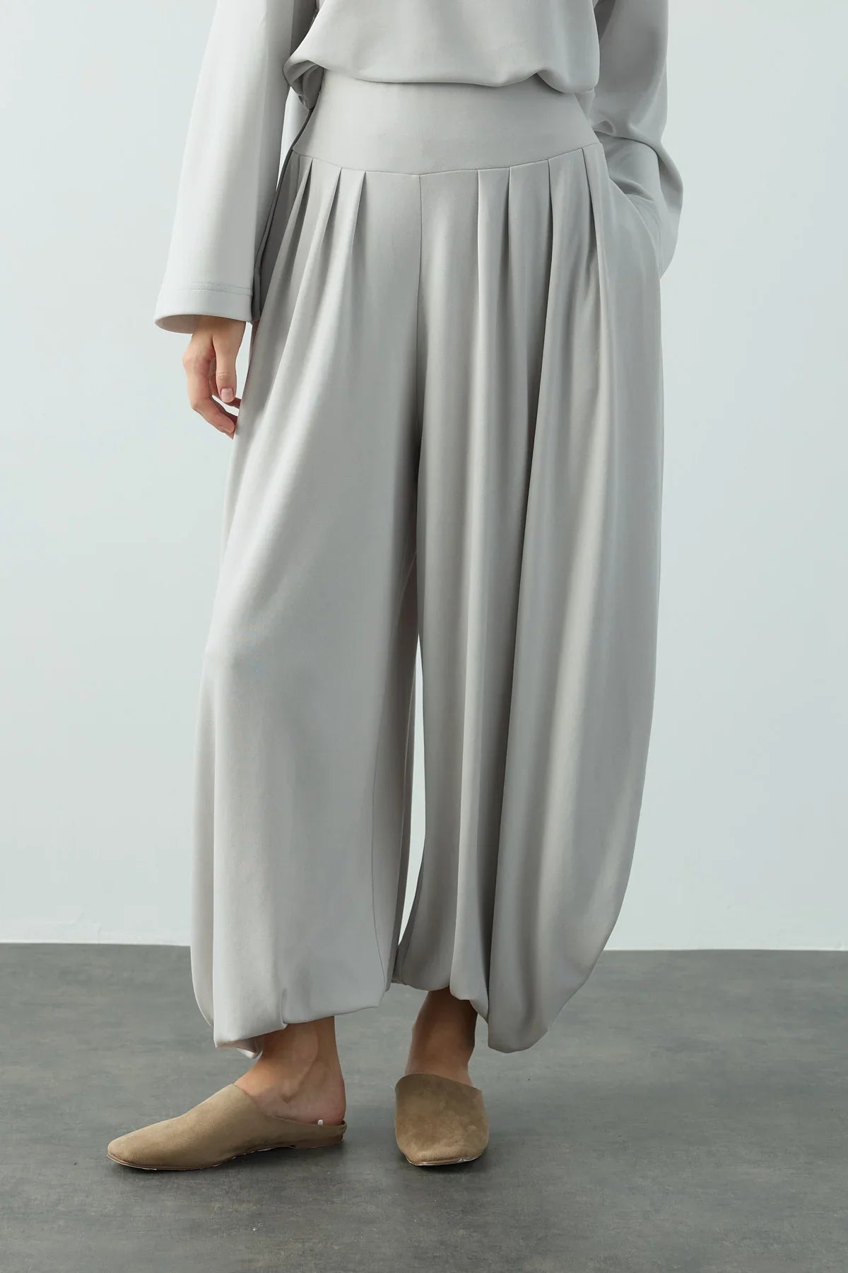 Yumuşak dokusu ve rahat kesimiyle şalvar pantolon, tencel kumaşı sayesinde nefes alabilirlik ve gün boyu konfor sunar. Önden pili detayları,korse görünümlü bel hattı sizi gün boyu rahat hissettirir.