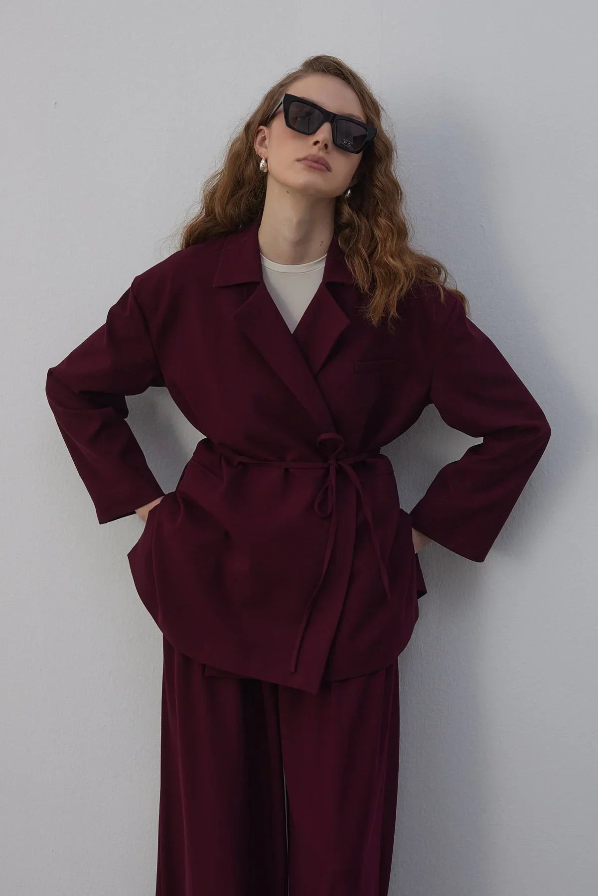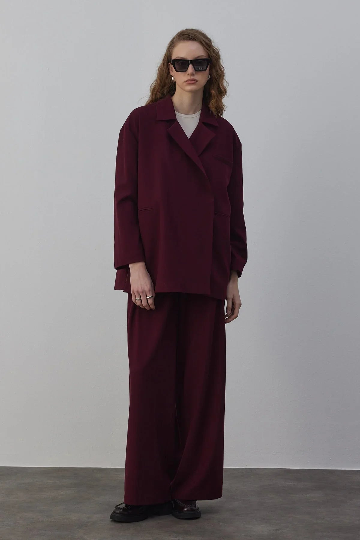Edy Astarlı Kruvaze Blazer Ceket Bordo