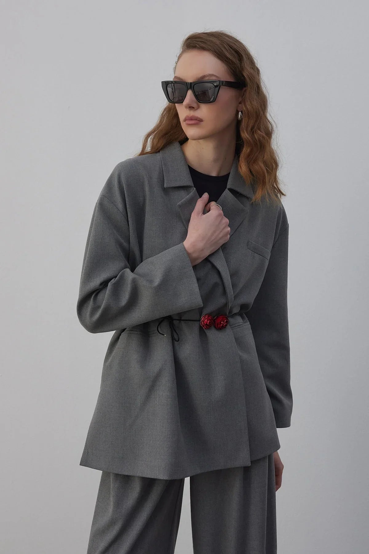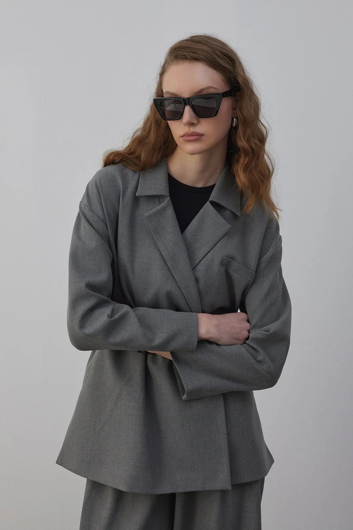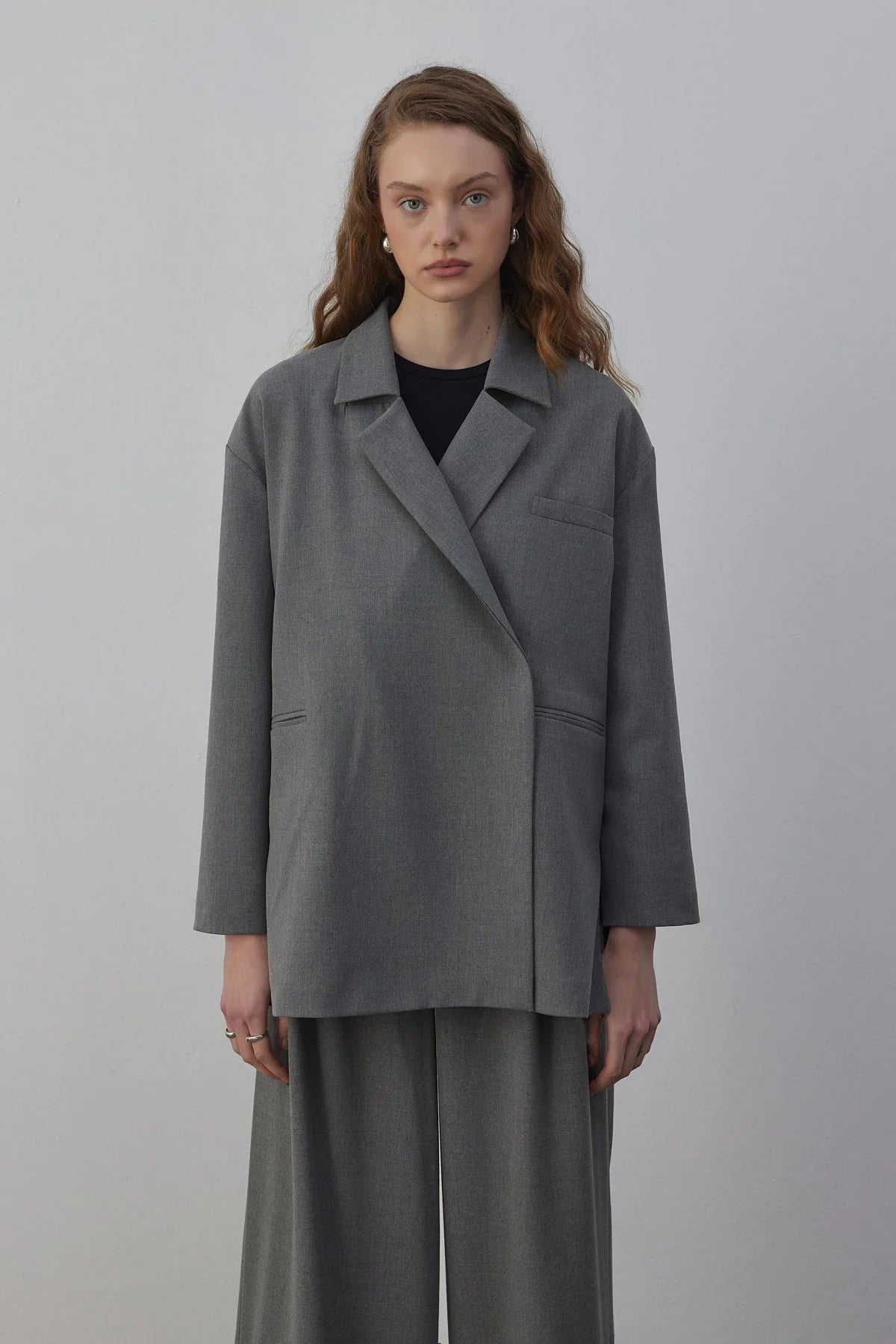 Edy Astarlı Kruvaze Blazer Ceket Gri