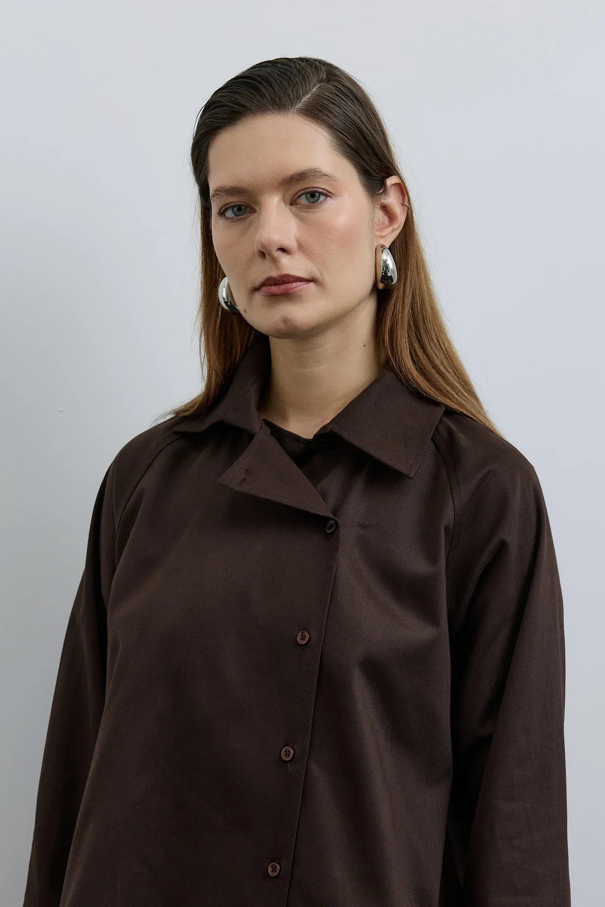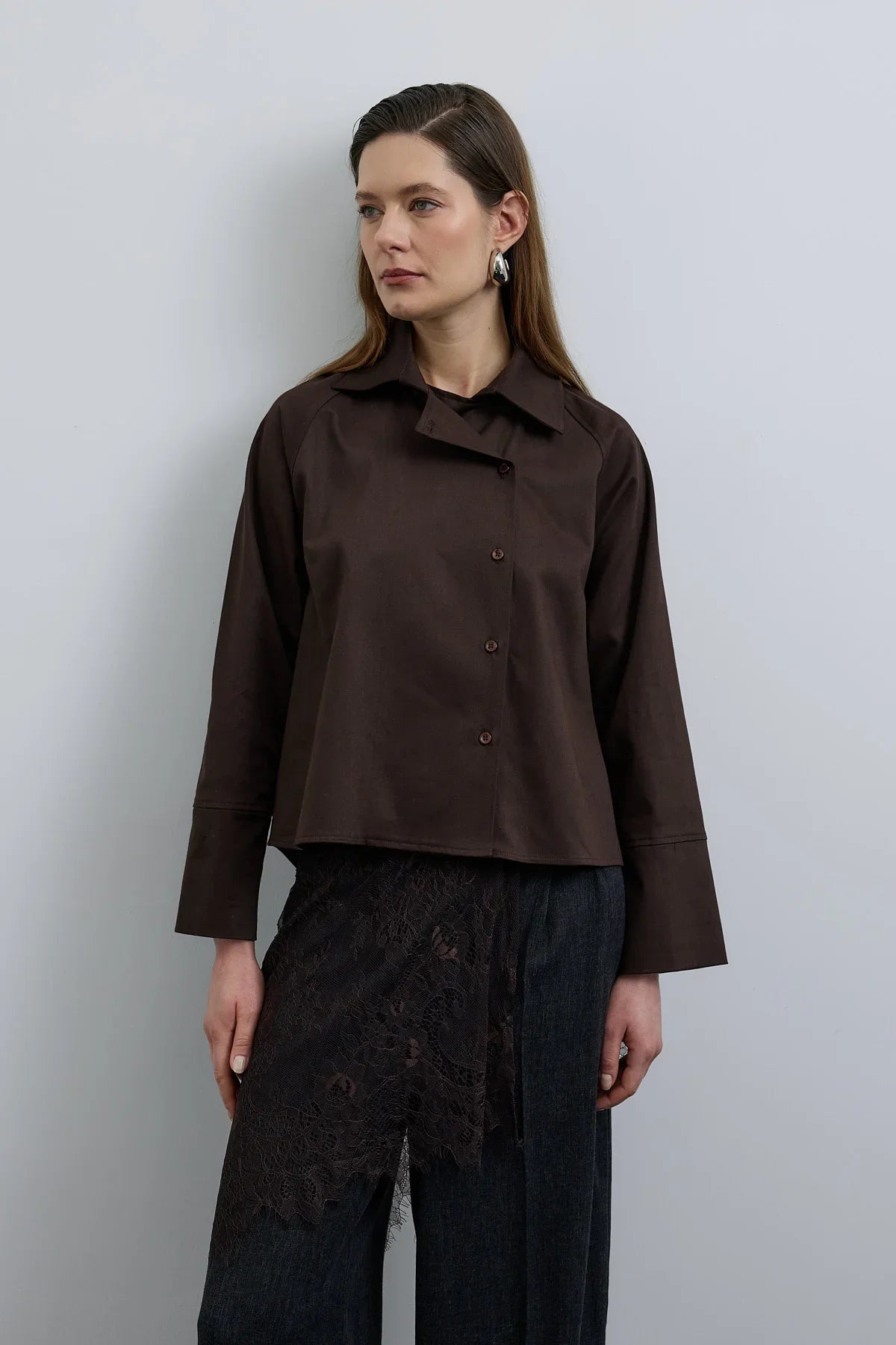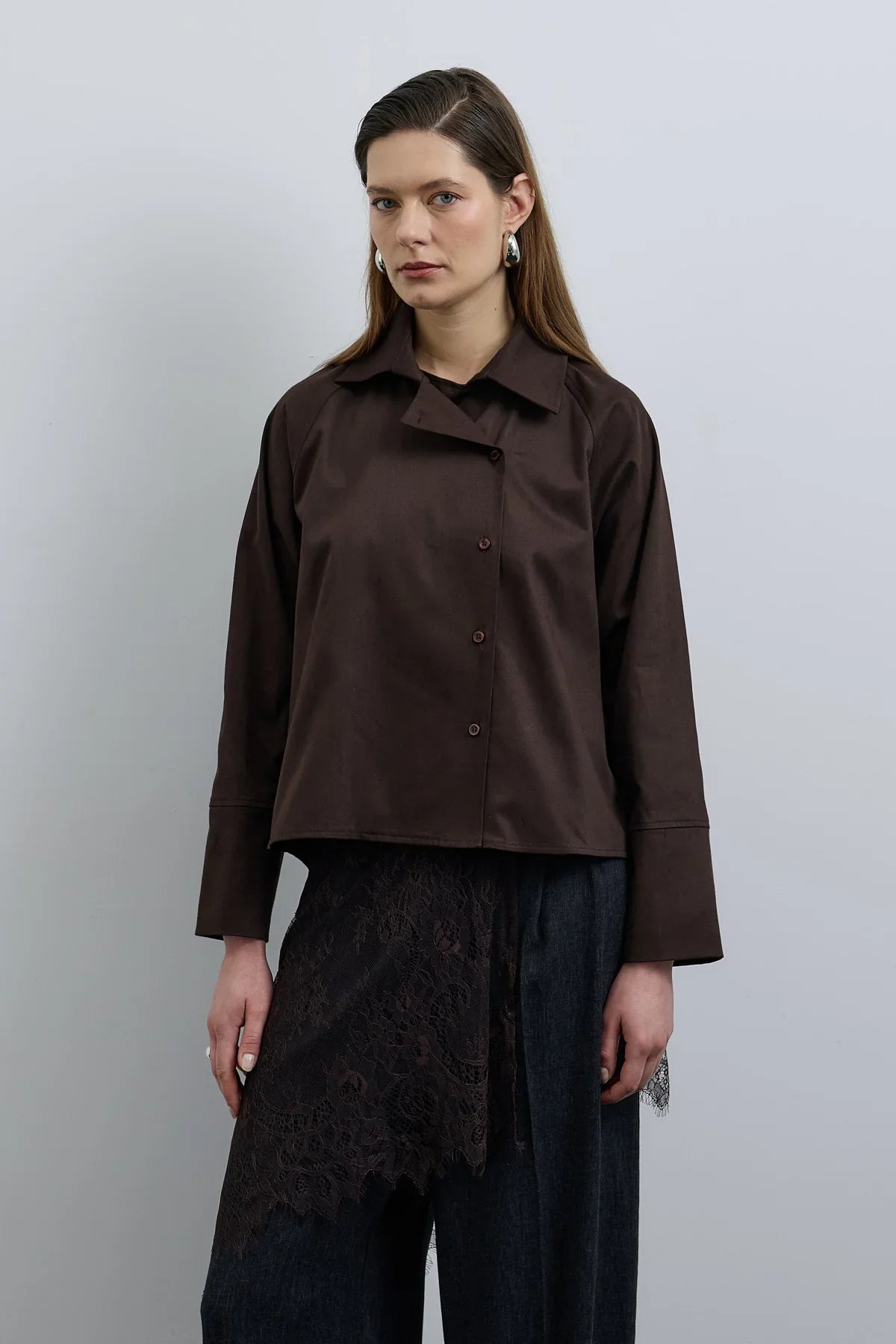 Elvo Kruvaze Düğmeli Gömlek Kahverengi