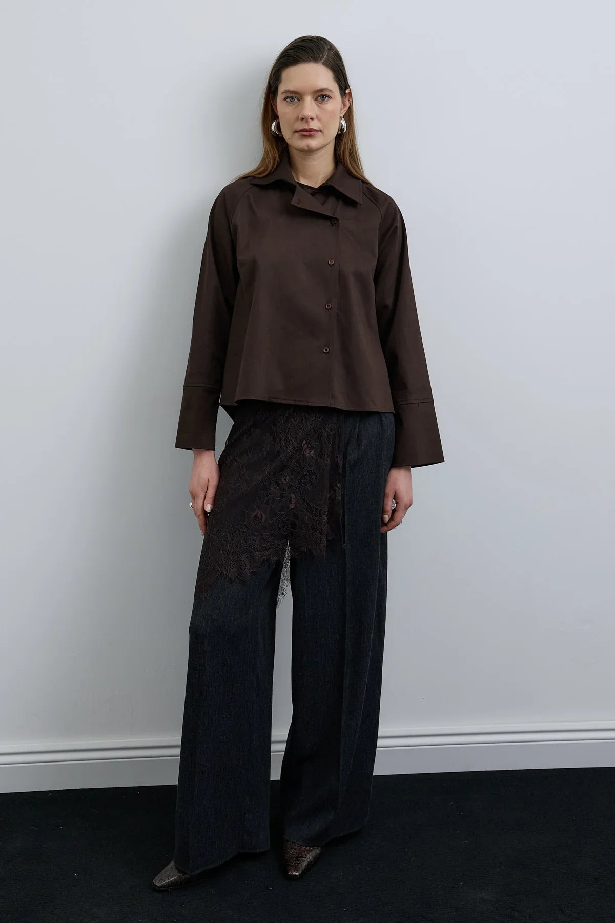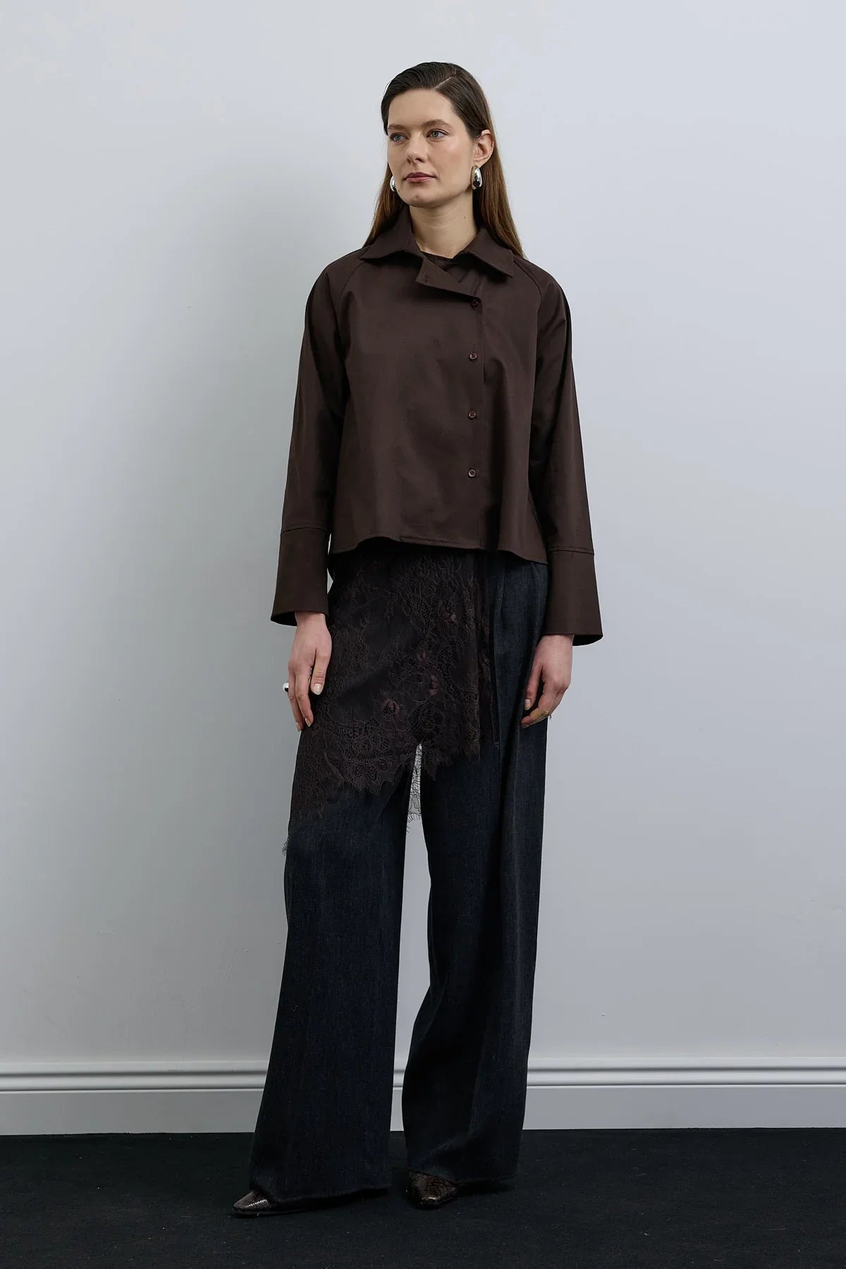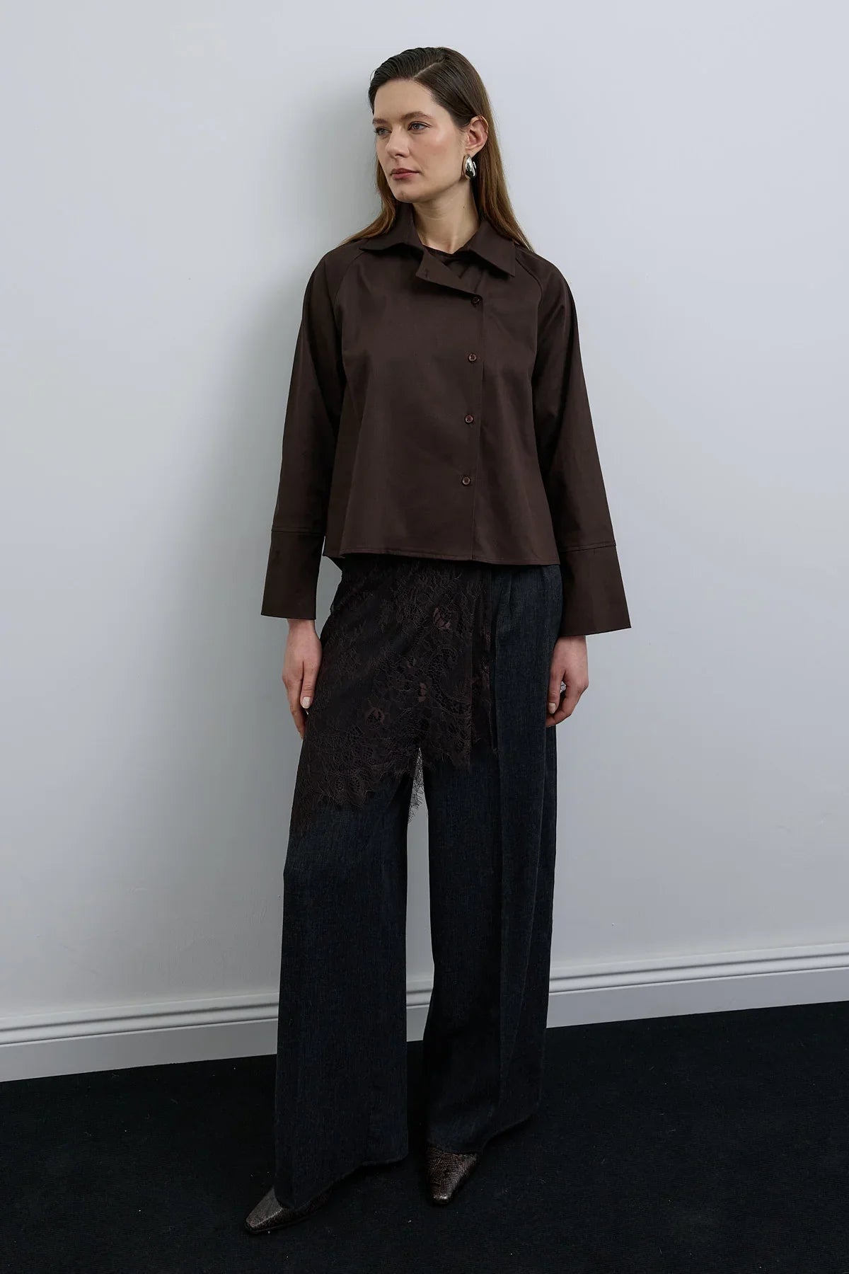 Elvo Kruvaze Düğmeli Gömlek Kahverengi