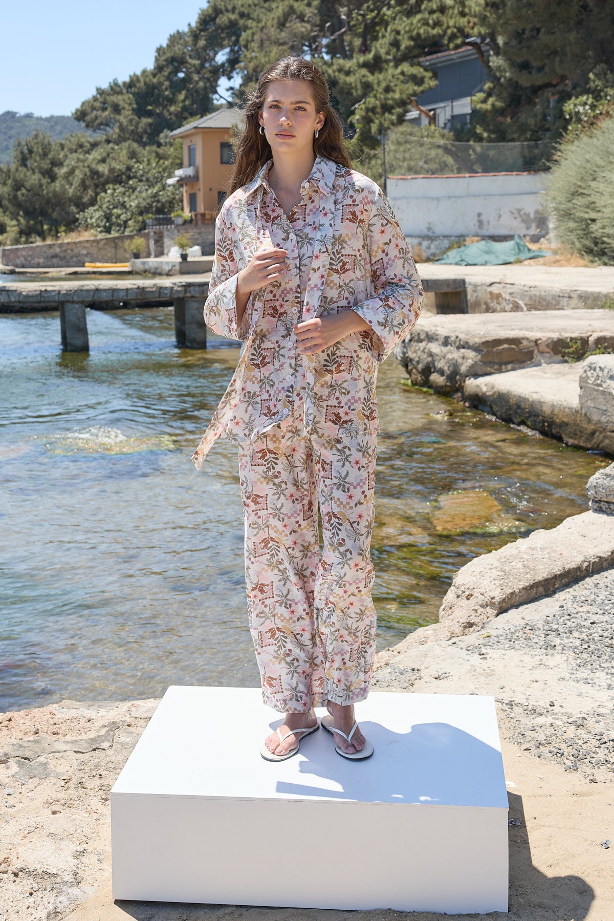 Fıra Desenli Pantolon Palmiye Desenli