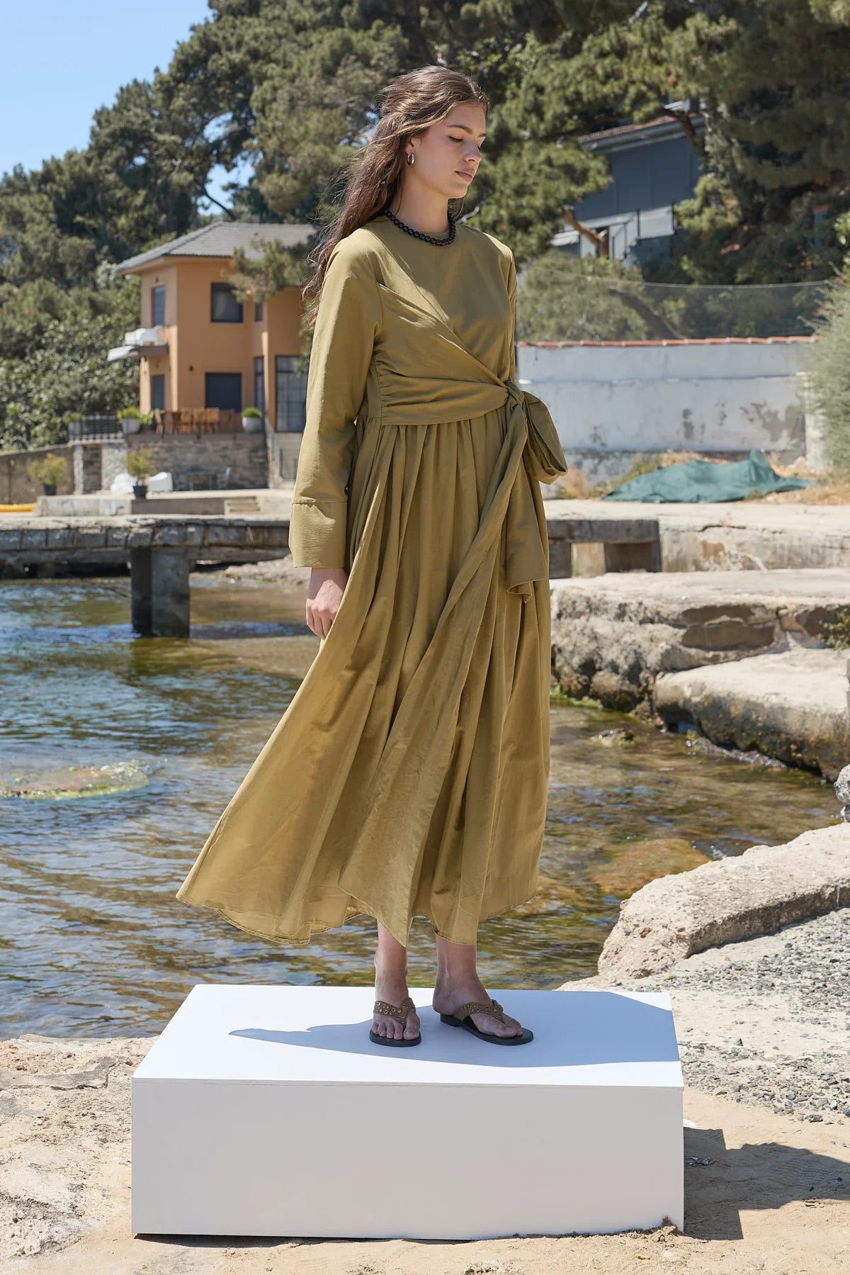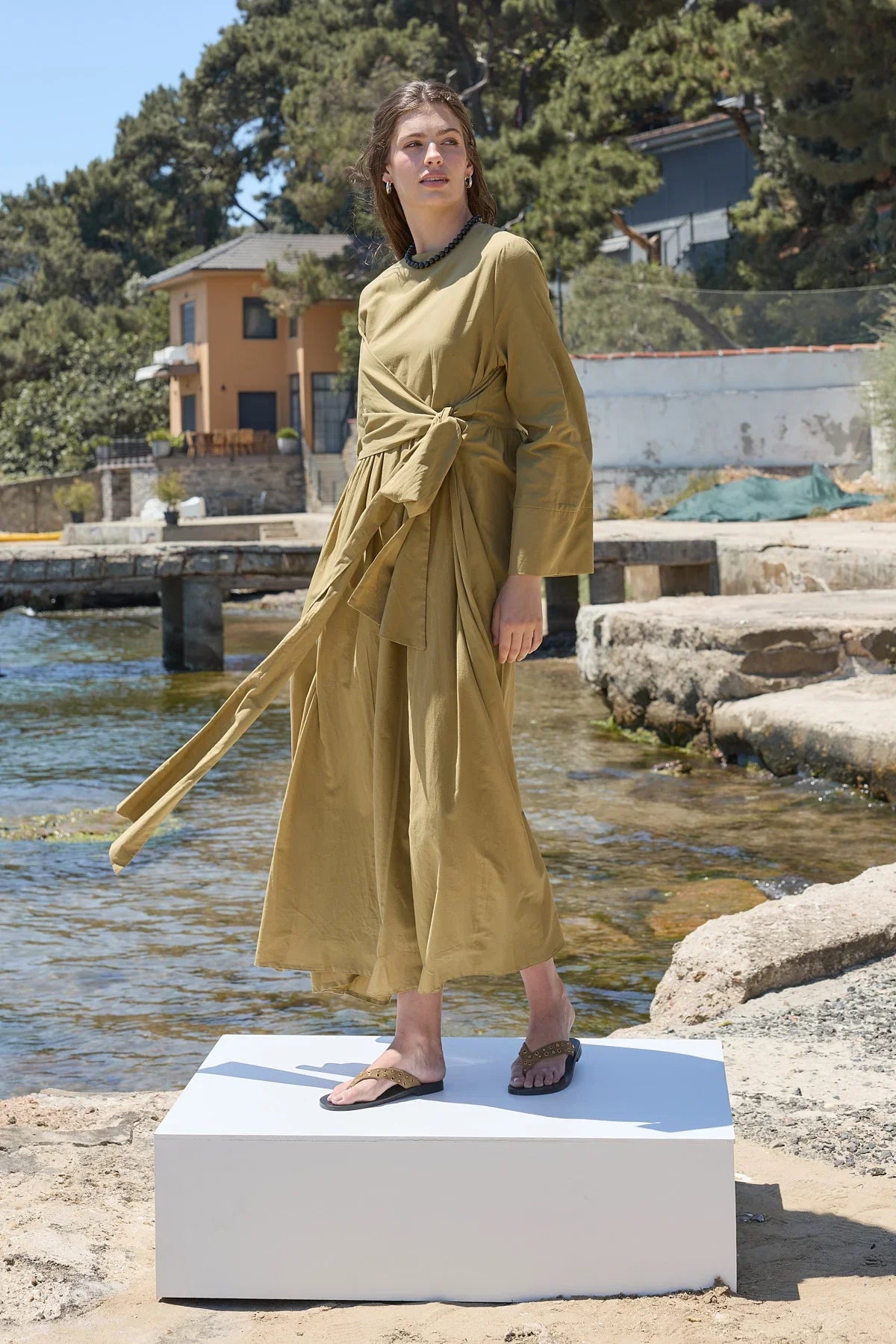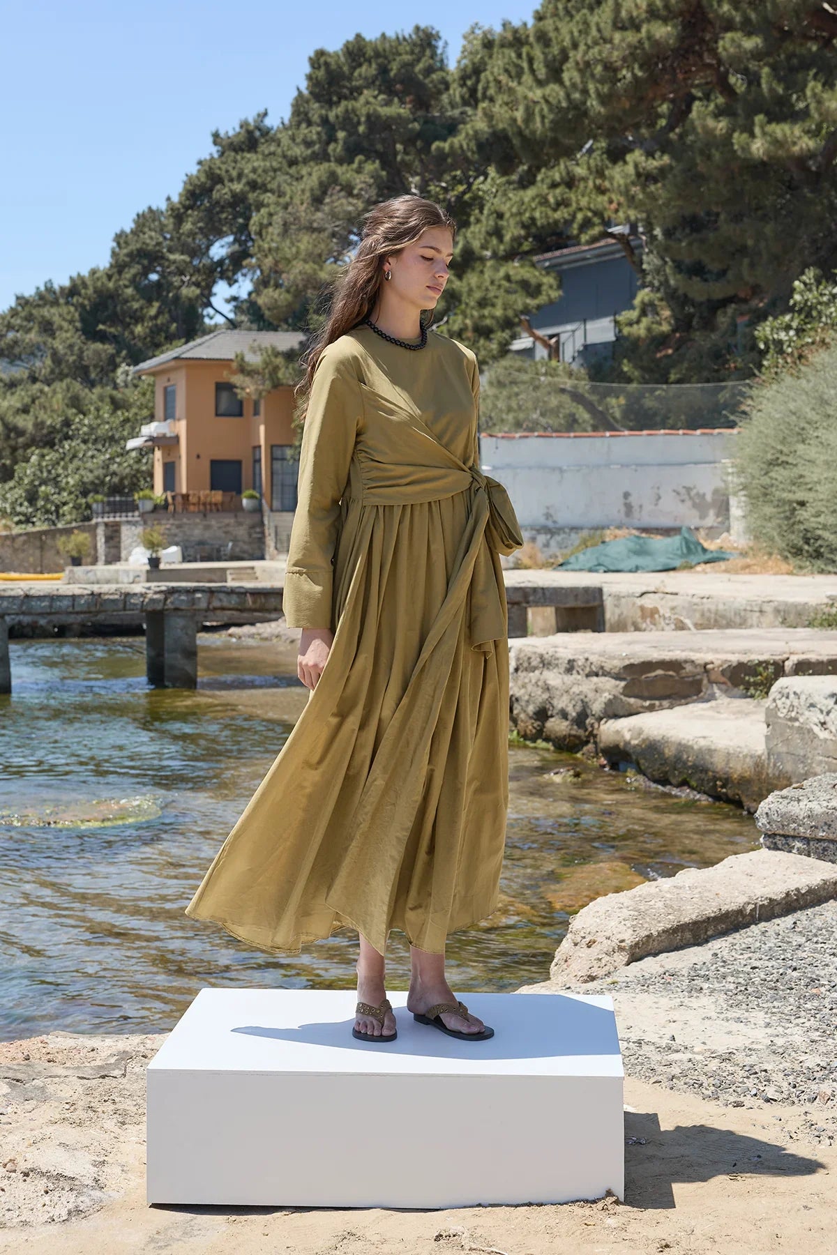 Forest Bağlamalı Vual Elbise Yağ Yeşili